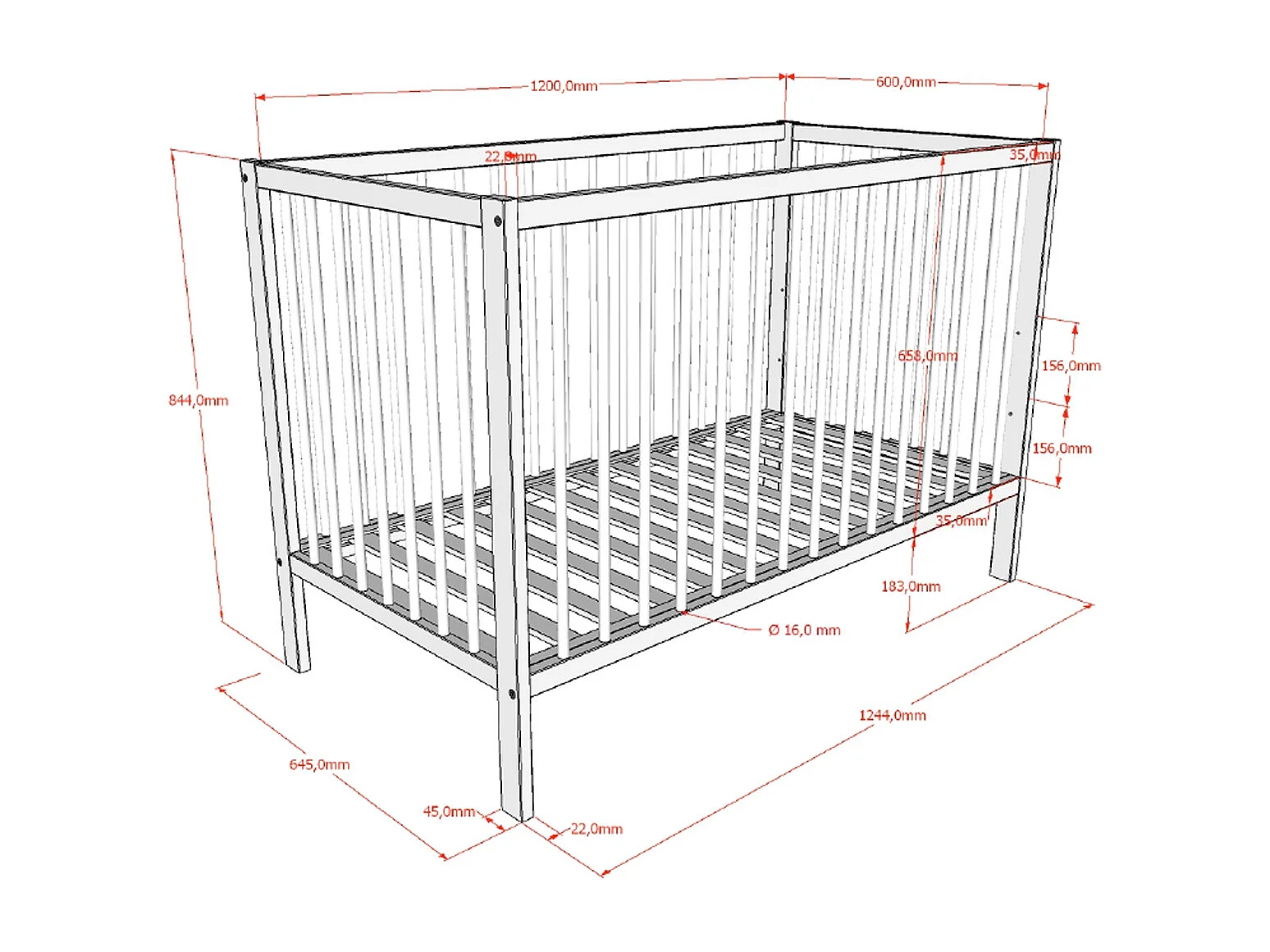 Cama de Bebé Vipack Meryl Wood 60X120 e Muda-Fraldas PETITS-MEUBLES