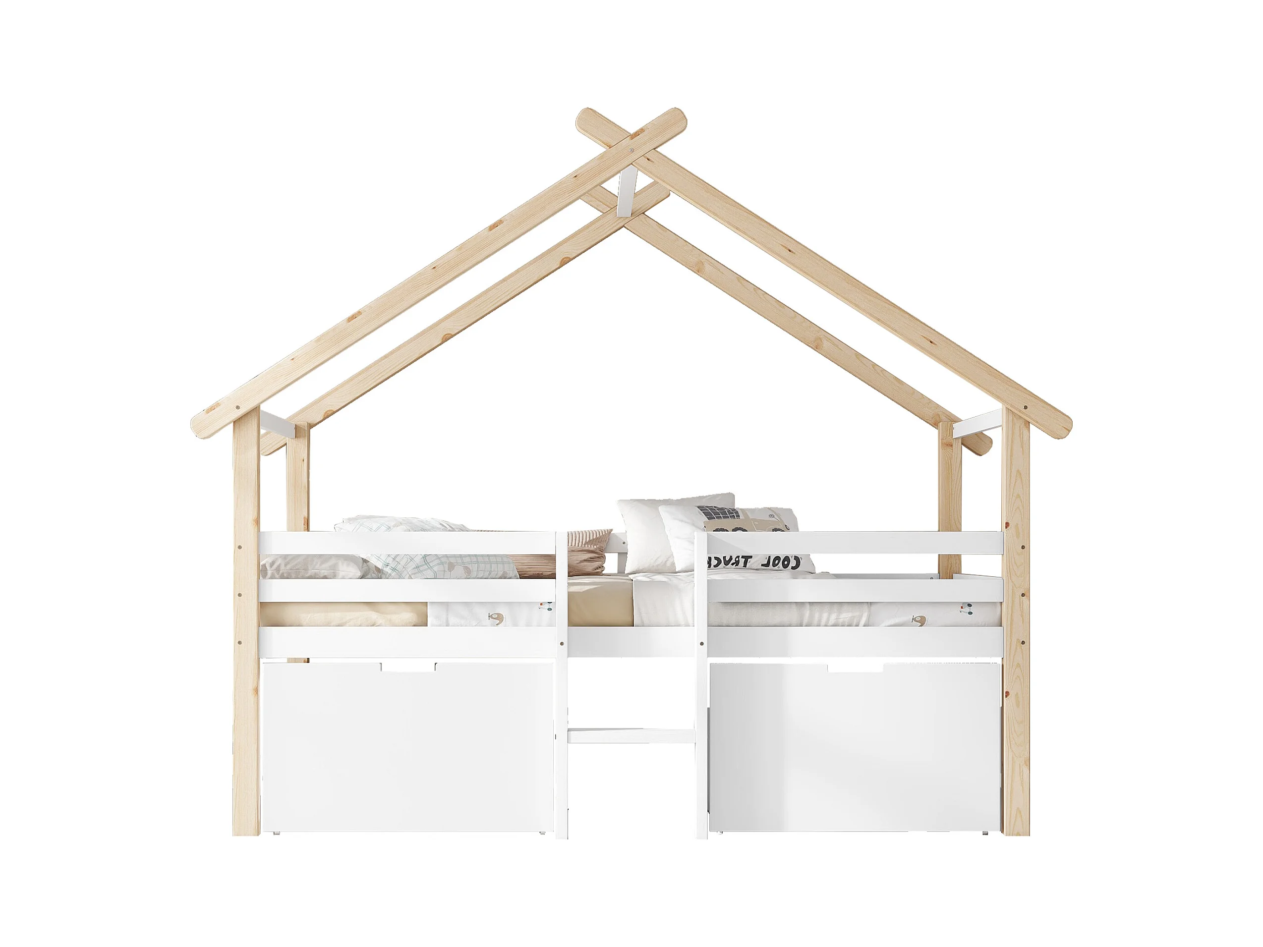Cama infantil de altura média - 90 x 200 cm - formato de casa - com armazenamento + 3 gavetas - madeira - branco