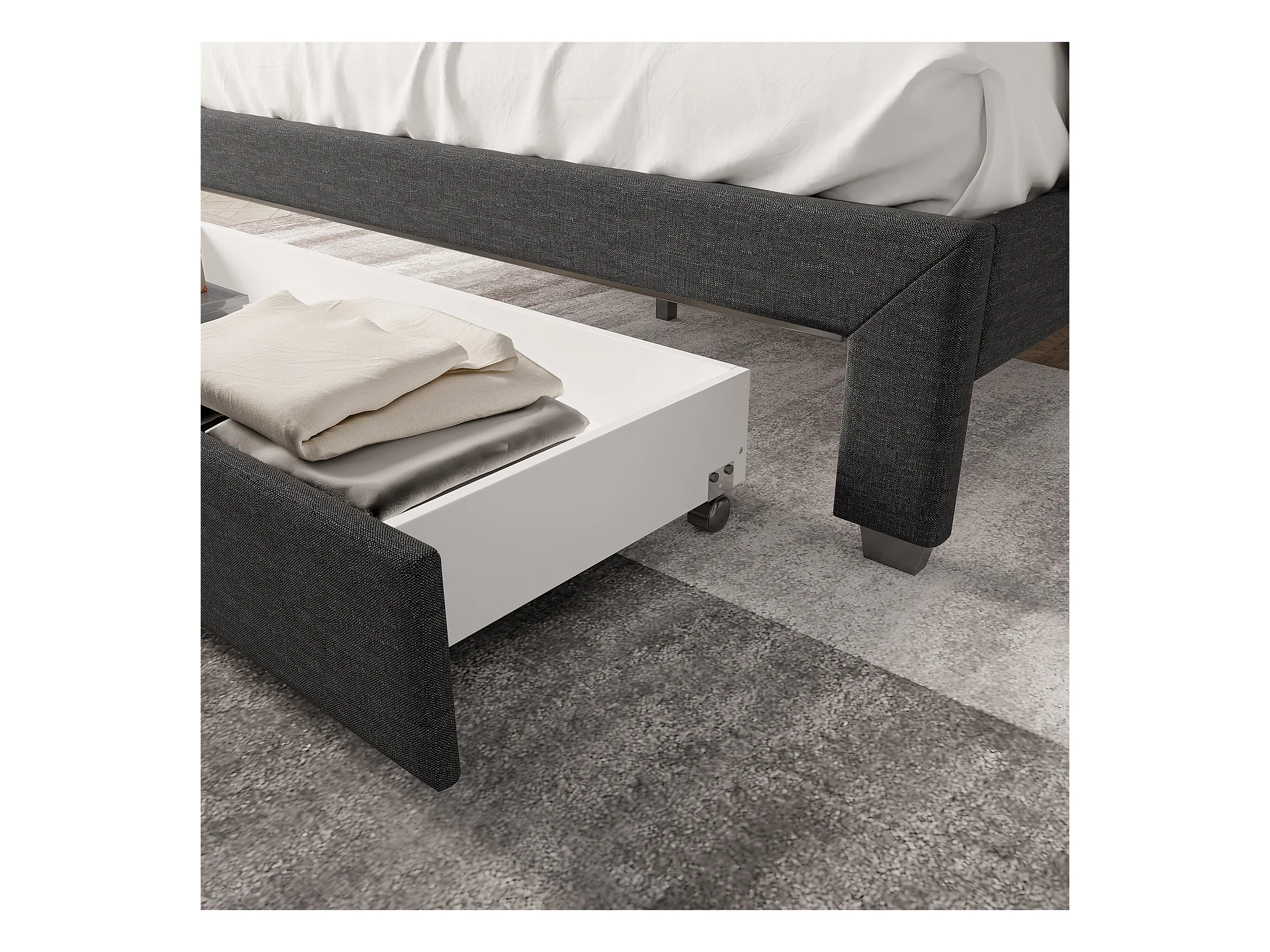 Cama 140 x 200 cm com armazenamento e USB, estrutura de cama com 4 gavetas e base de ripas, cinza escuro