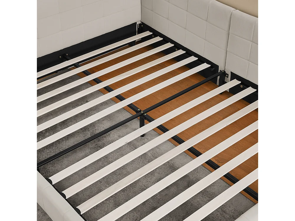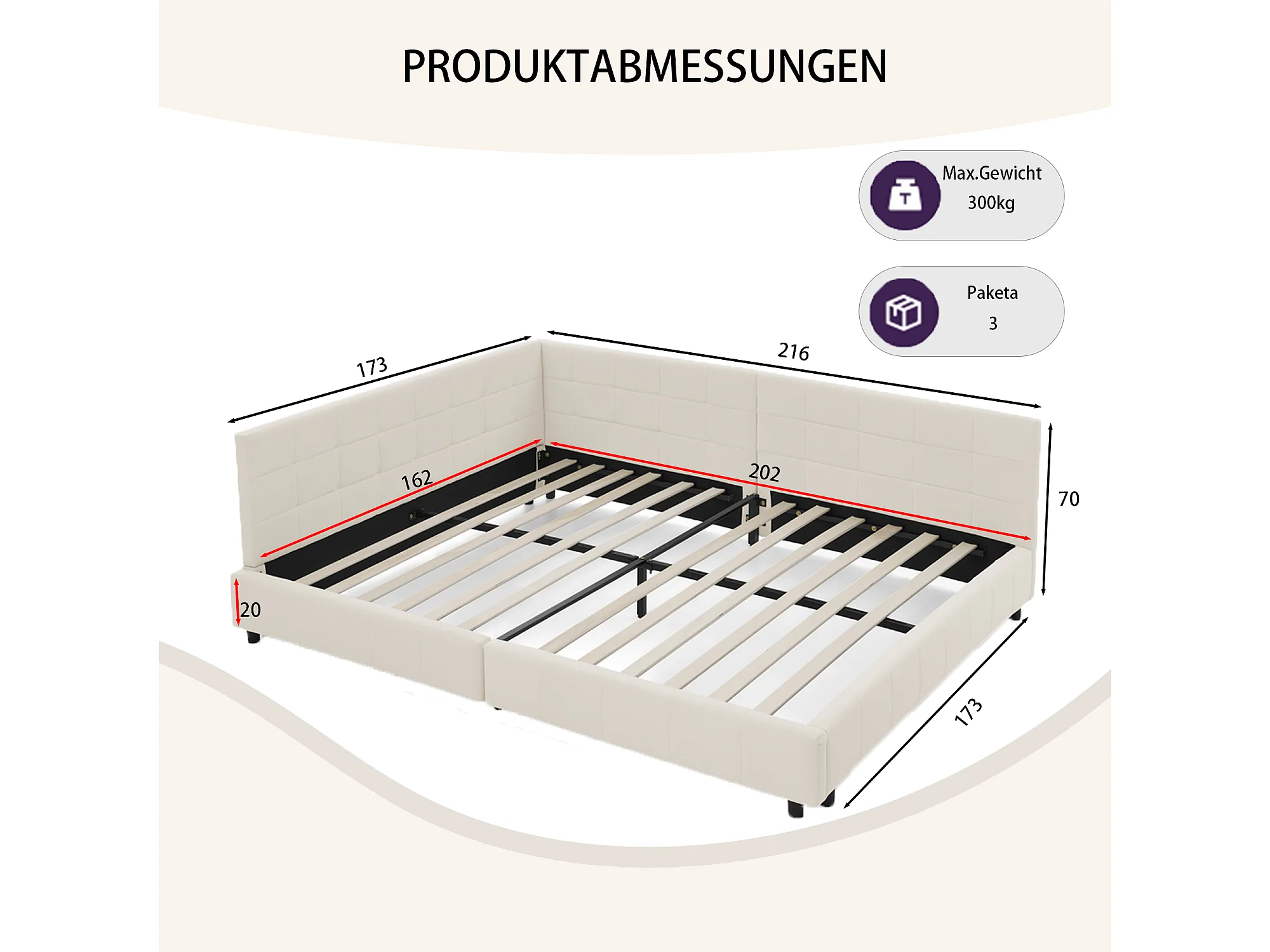 Cama de casal 160 × 200 cm, design em veludo suave para a pele, encosto alto, bege (colchão não incluído)