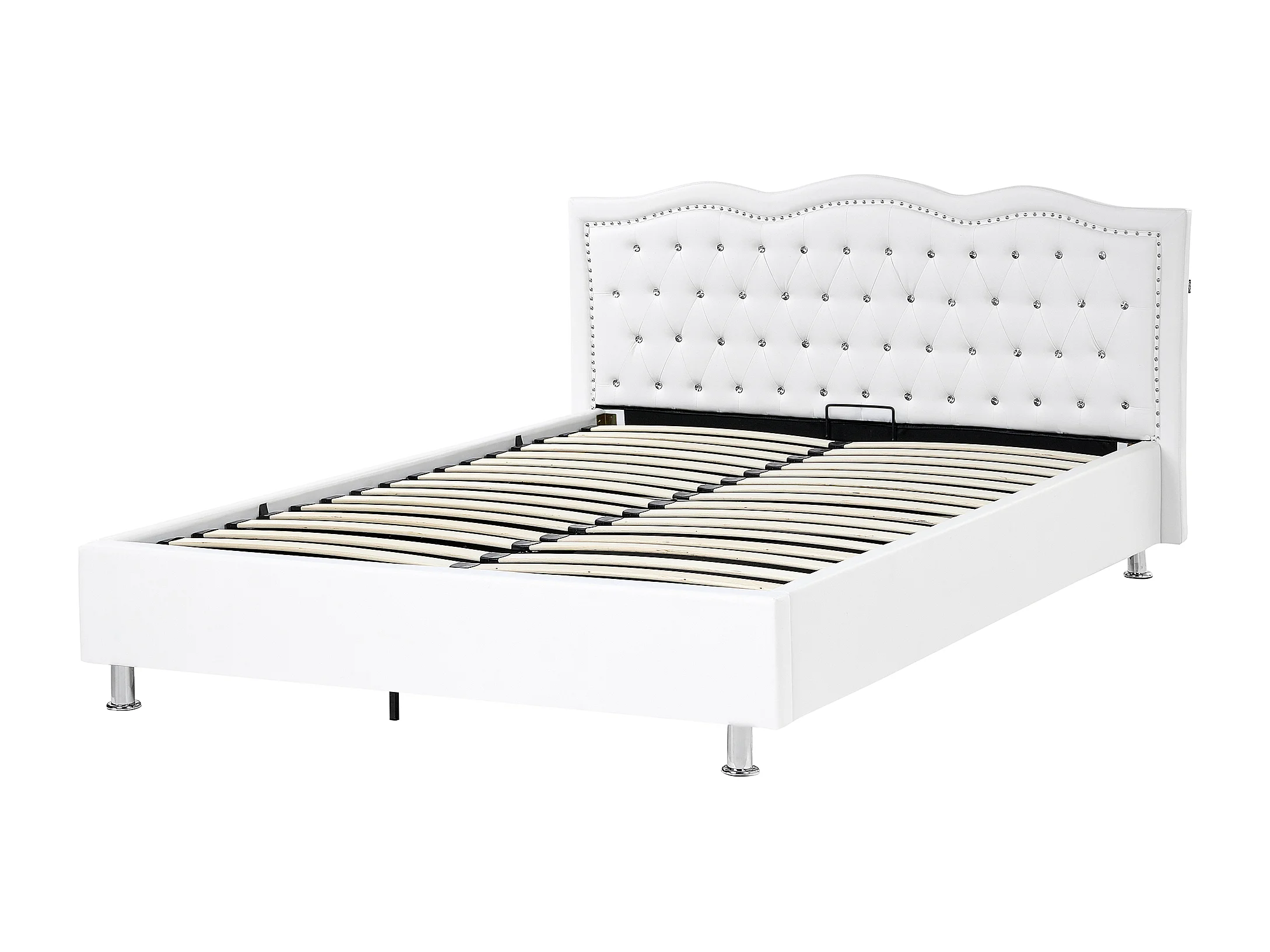 Cama baú Pele sintética METZ 160 x 200 cm Branco
