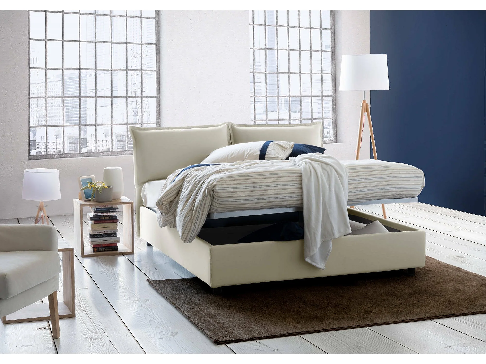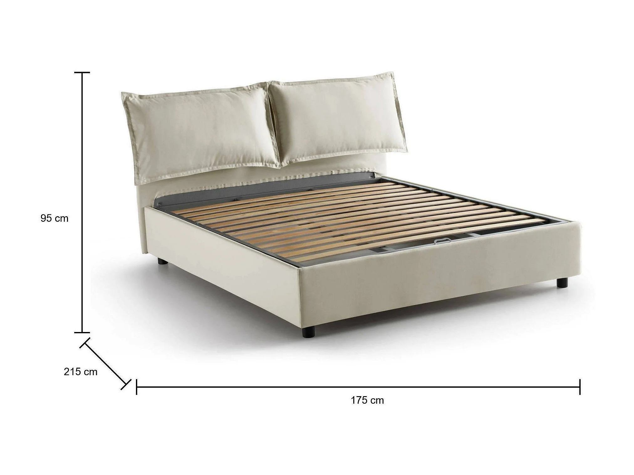 Cama de casal Dabdelli, Cama de armazenamento com forro de tecido, 100% Fabricado na Itália, Abertura frontal, adequada para colchão 160x200 cm, Bege