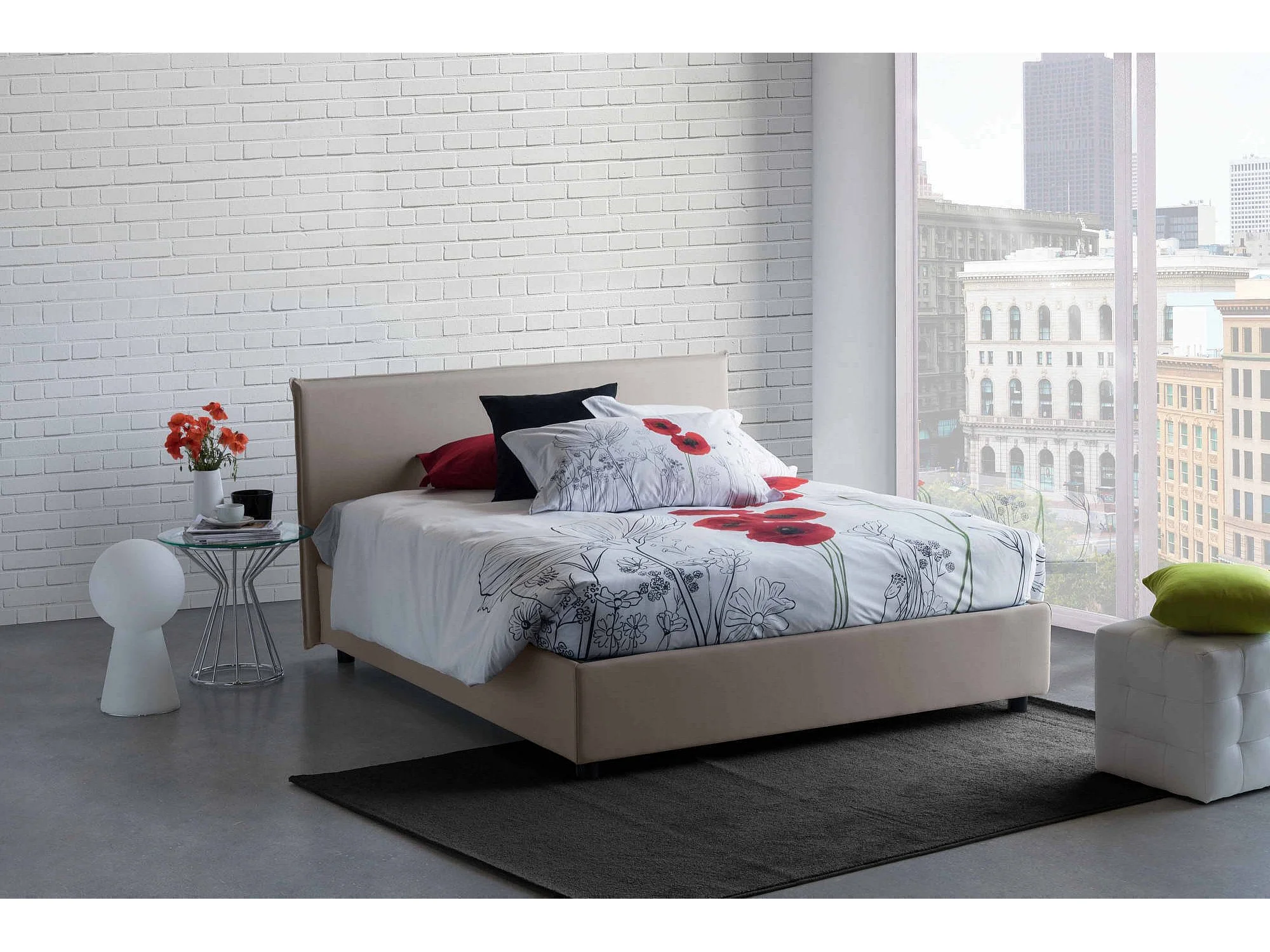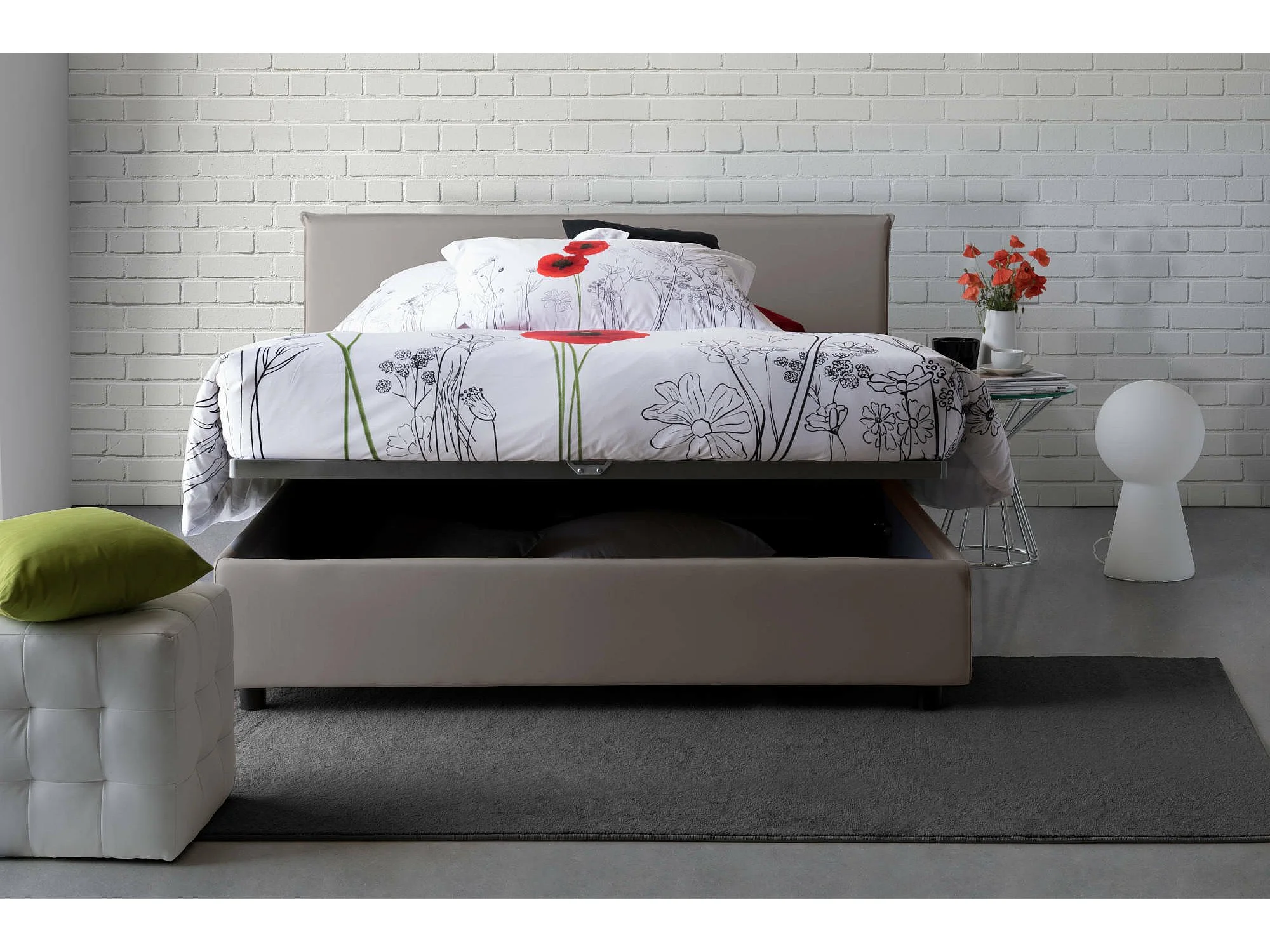 Cama de casal Dangel, Cama de armazenamento com forro de tecido, 100% Fabricado na Itália, Abertura frontal, adequada para colchão 160x200 cm, cinza pomba