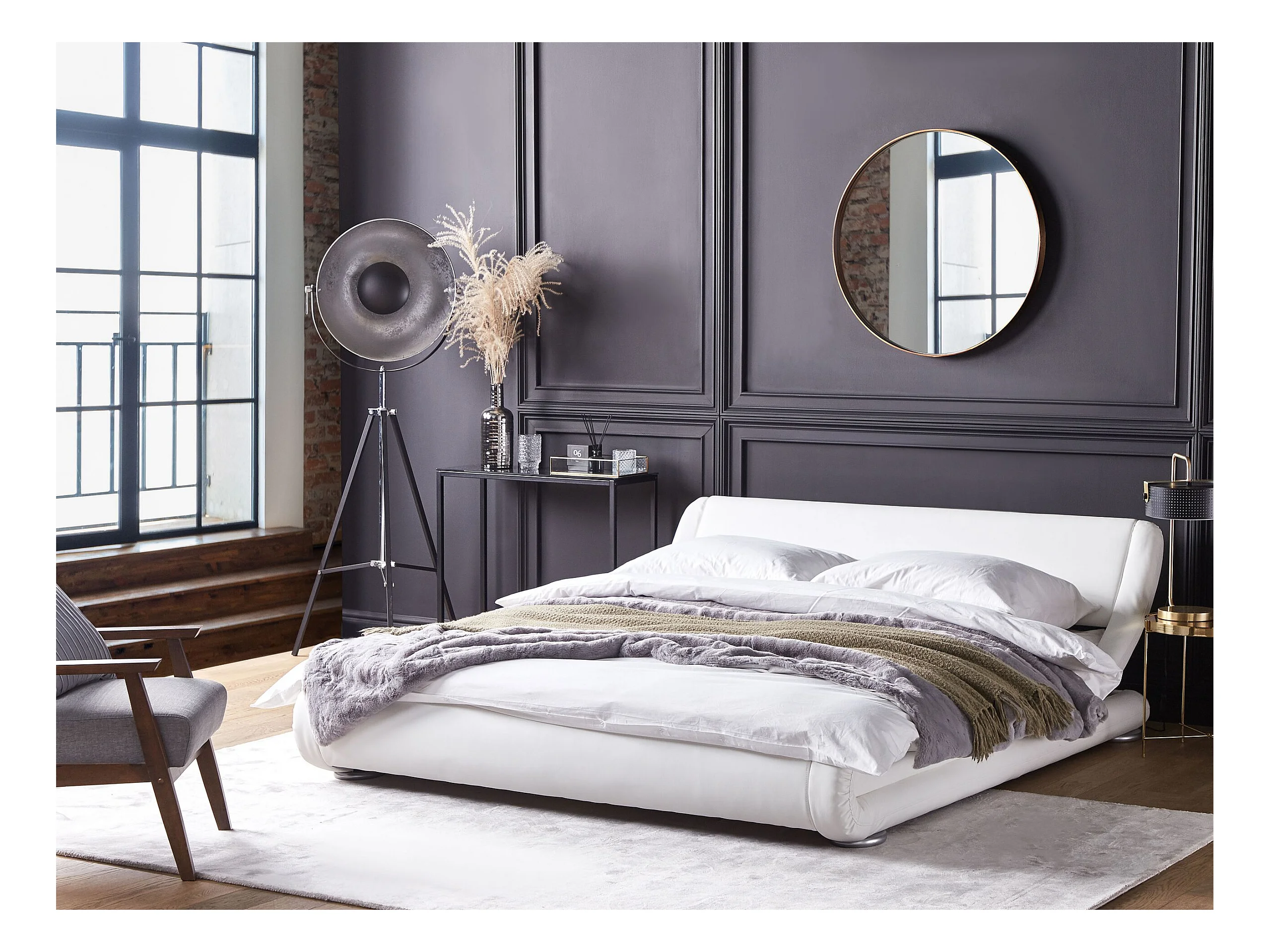 Cama de casal em pele sintética branca 180 x 200 cm AVIGNON