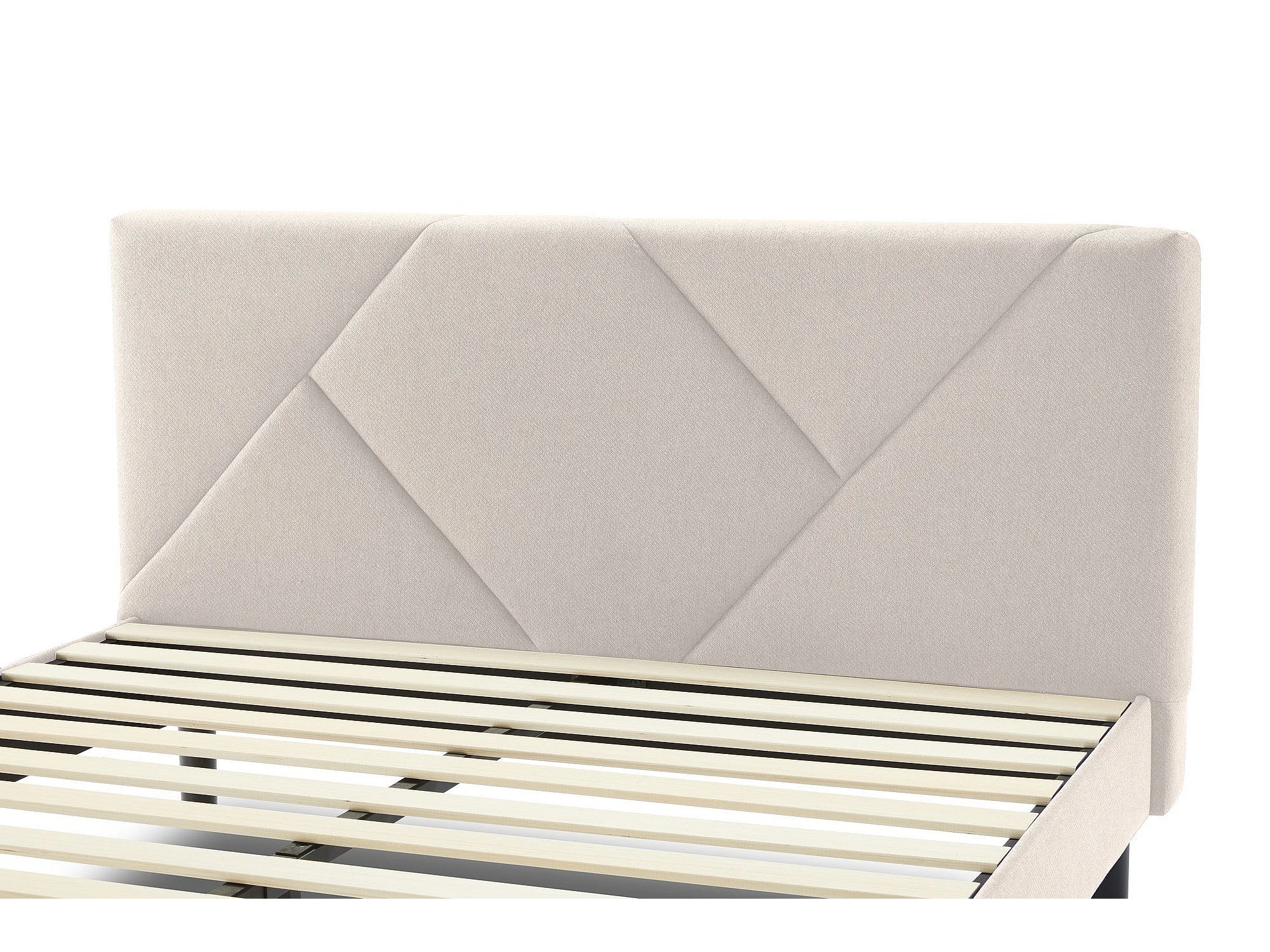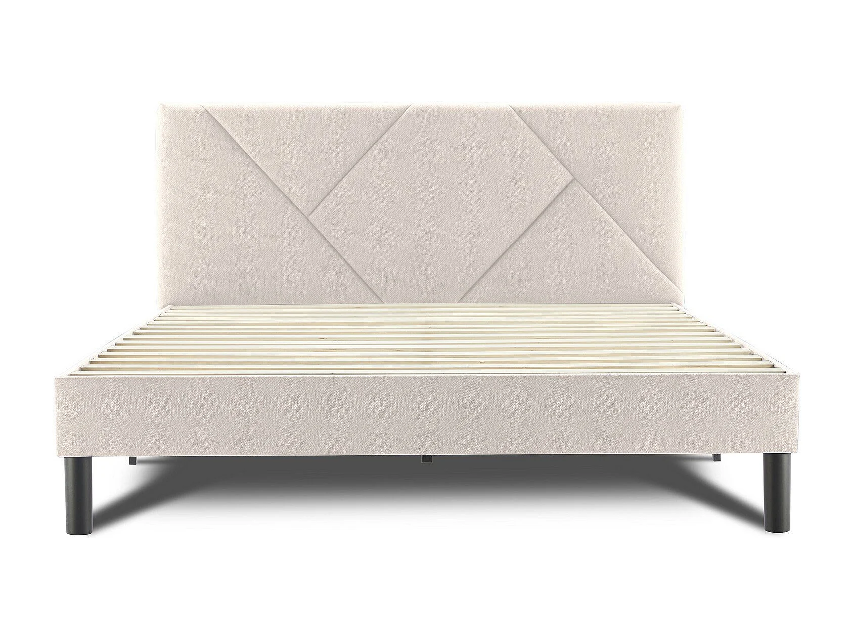 Cama de casal francesa Calitri, Cama estofada em tecido com cabeceira, Ripas de madeira, adequada para colchão 140x190, Bege
