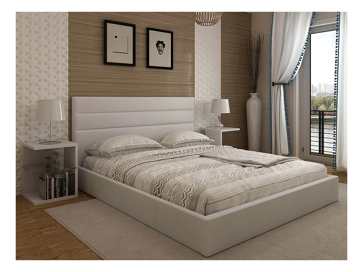 Cama de Casal Starlight, Estrado Elevatório (Branco)(190×140 cm)