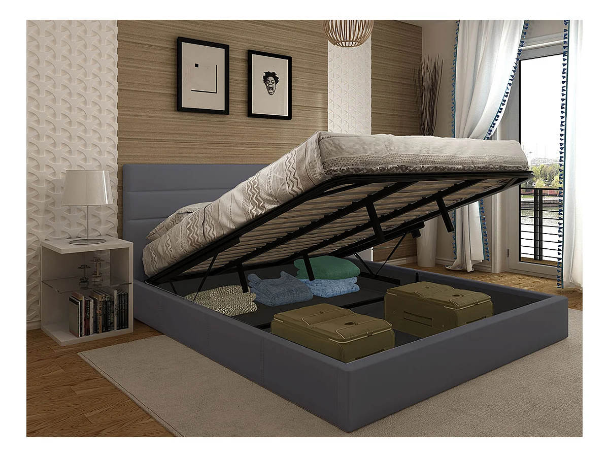 Lit coffre ORLANE – Cinza Carvão Mineral Polar – 180x200 cm – Estrado elevatório – Design de alta qualidade