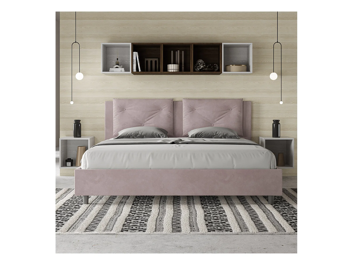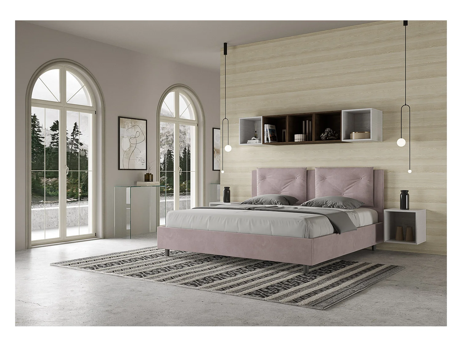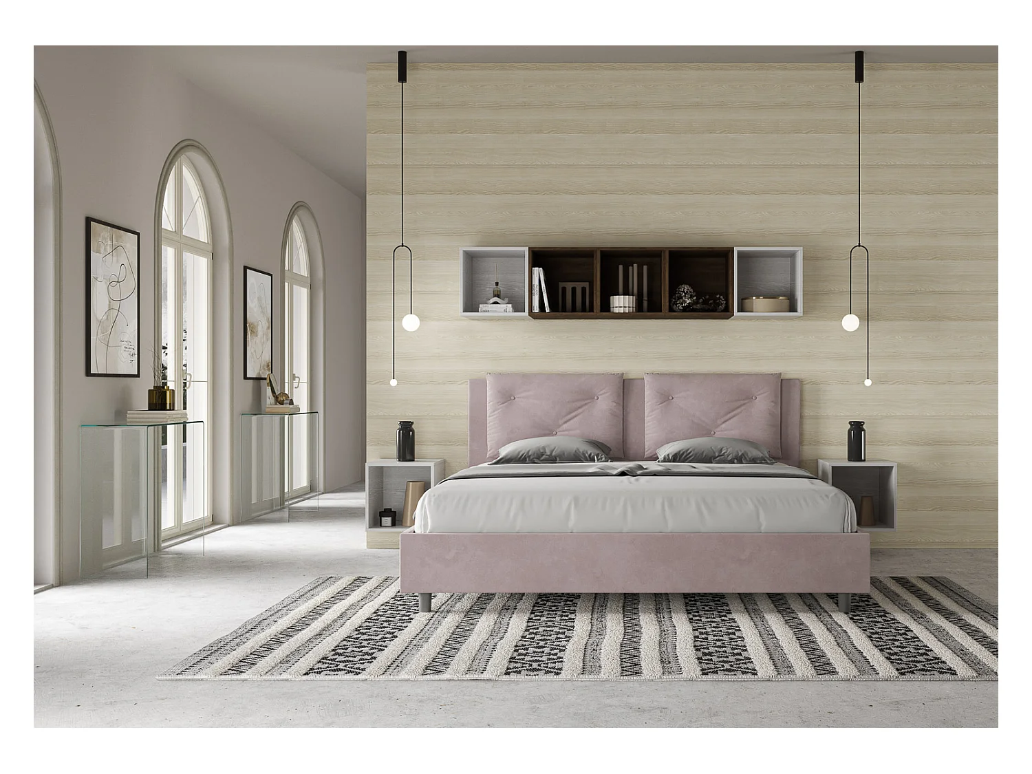 Cama de armazenamento acolchoada Appia 200x200 em microfibra de glicínia