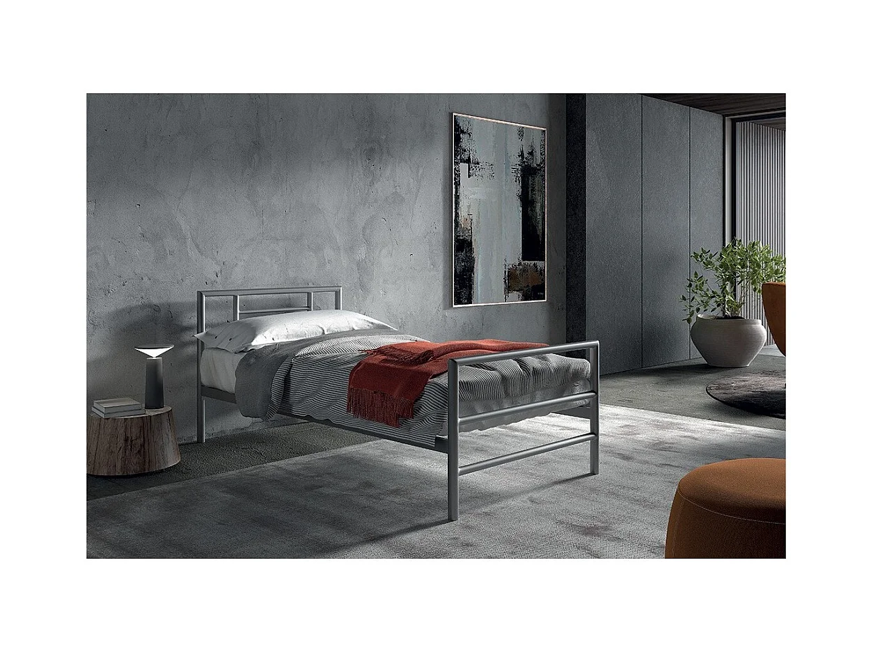Cama PAXOS 90x200 cm em metal cor prata com estrado.