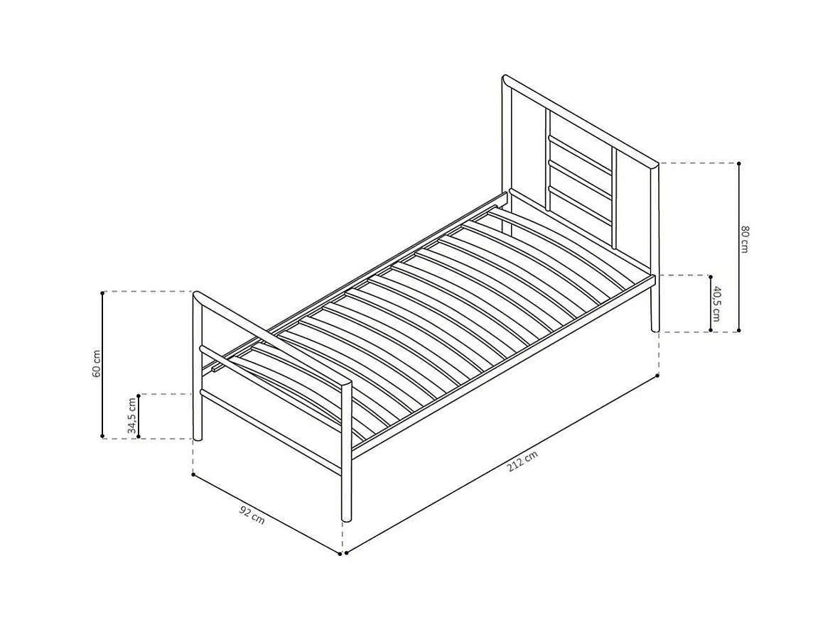 Cama de metal simples ECHO, 90x200 cm, cinza brilhante com estrado incluído