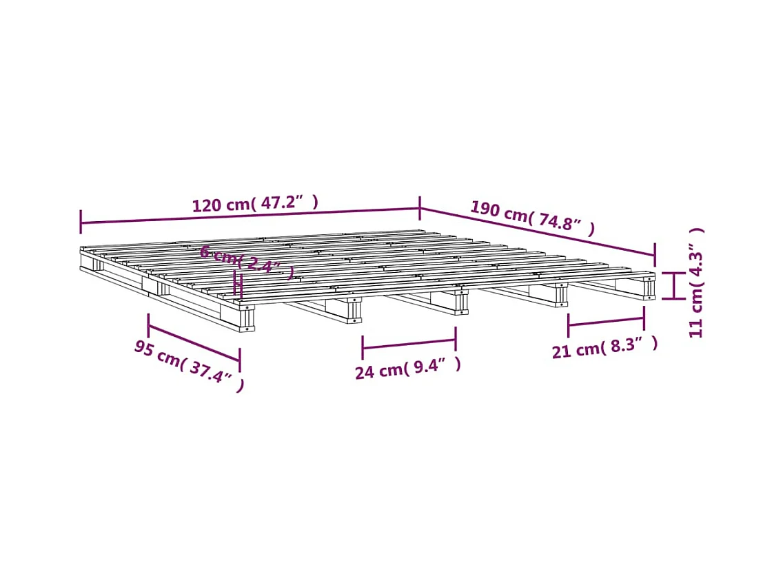 Cama de paletes pequena de casal 120x190 cm pinho maciço