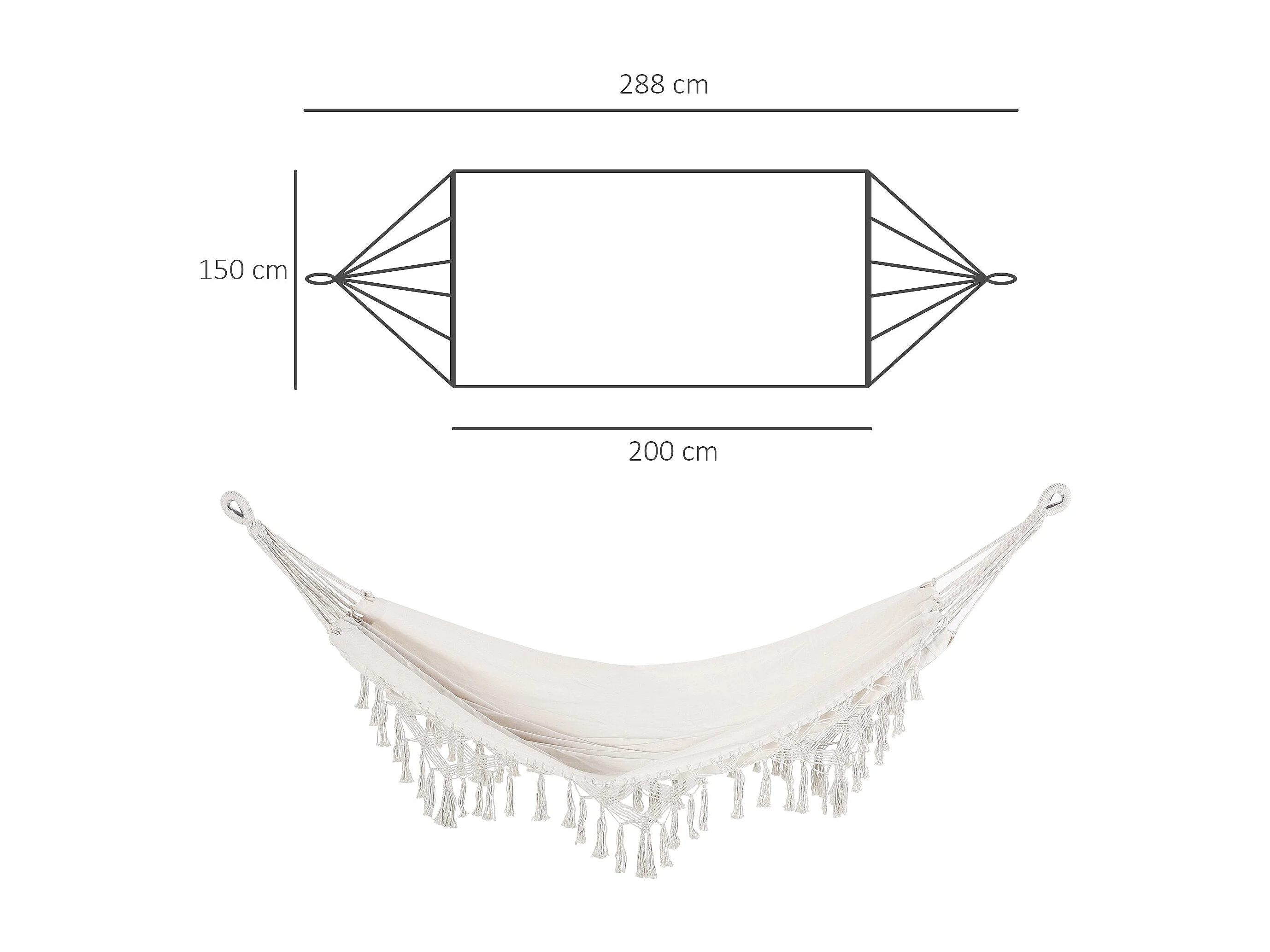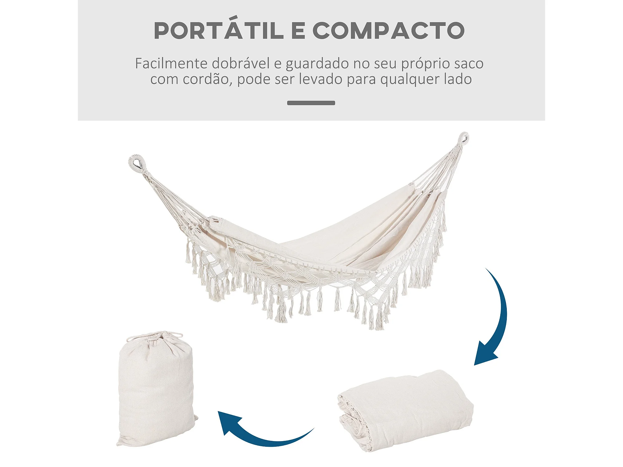 Cama de Rede Suspensa em Algodão e Poliéster 288x150 cm – Ideal para Relaxar e Aventuras ao Ar Livre
