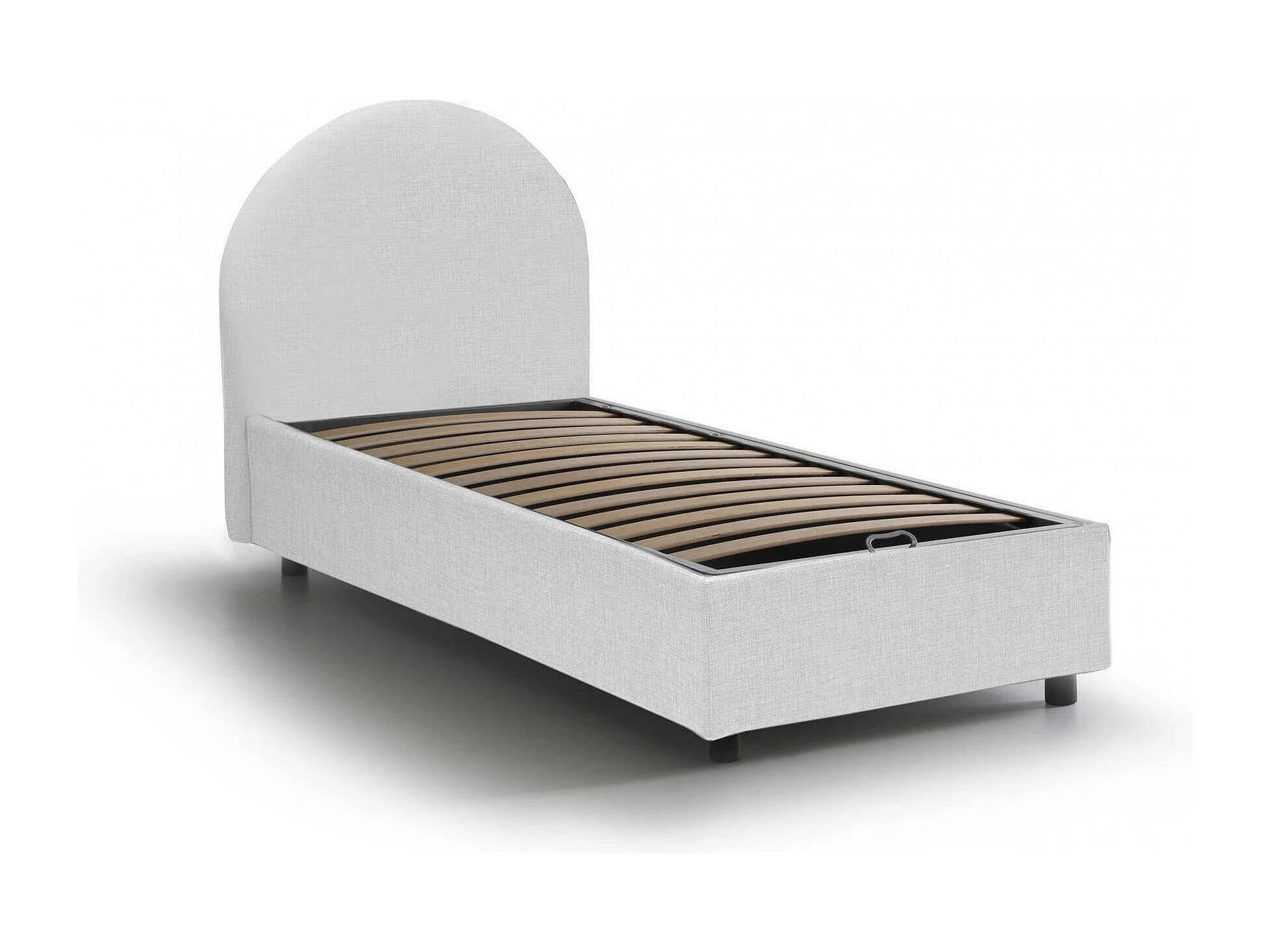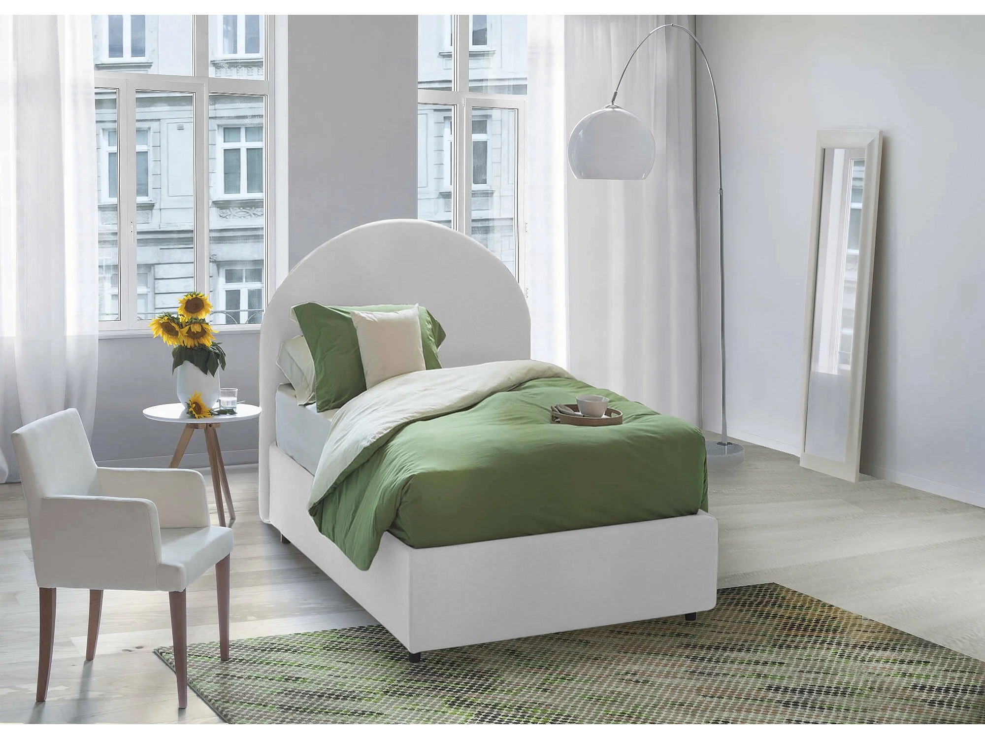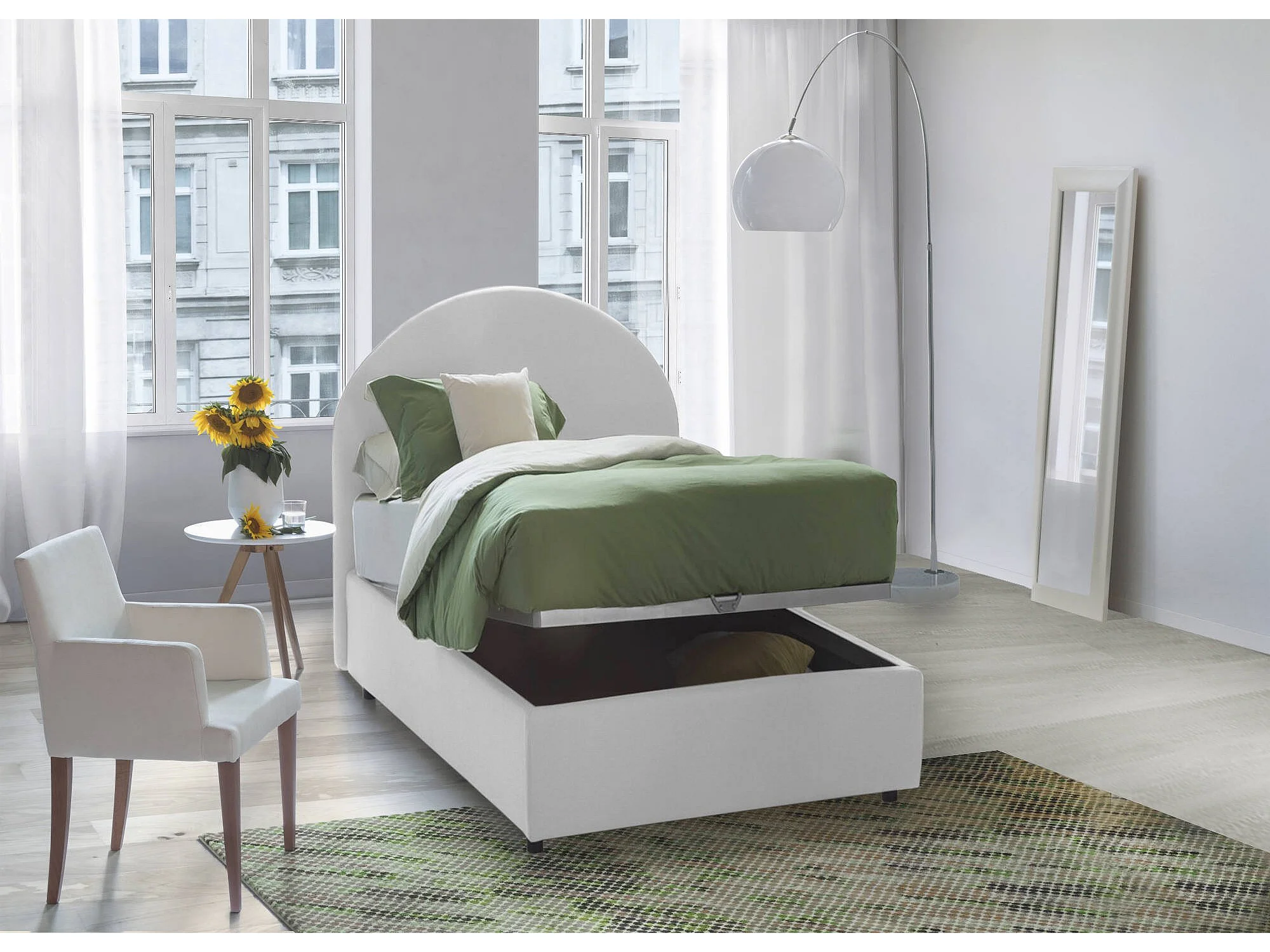 Cama de solteiro Beatrice, Cama de armazenamento com forro de tecido, 100% Fabricado na Itália, Abertura frontal, adequada para colchão 80x190 cm, Branco