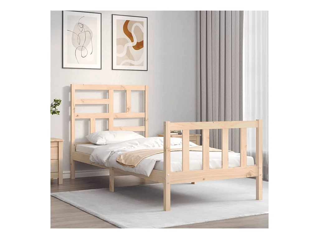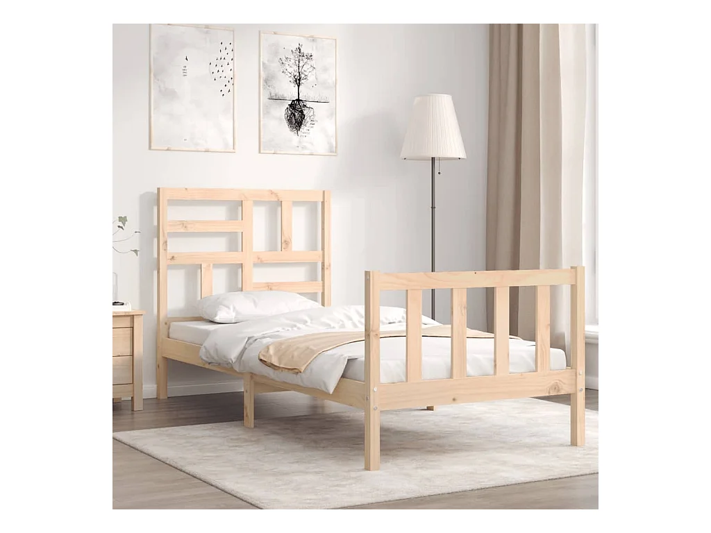 Cama de solteiro pequena c/ cabeceira madeira maciça PT776813