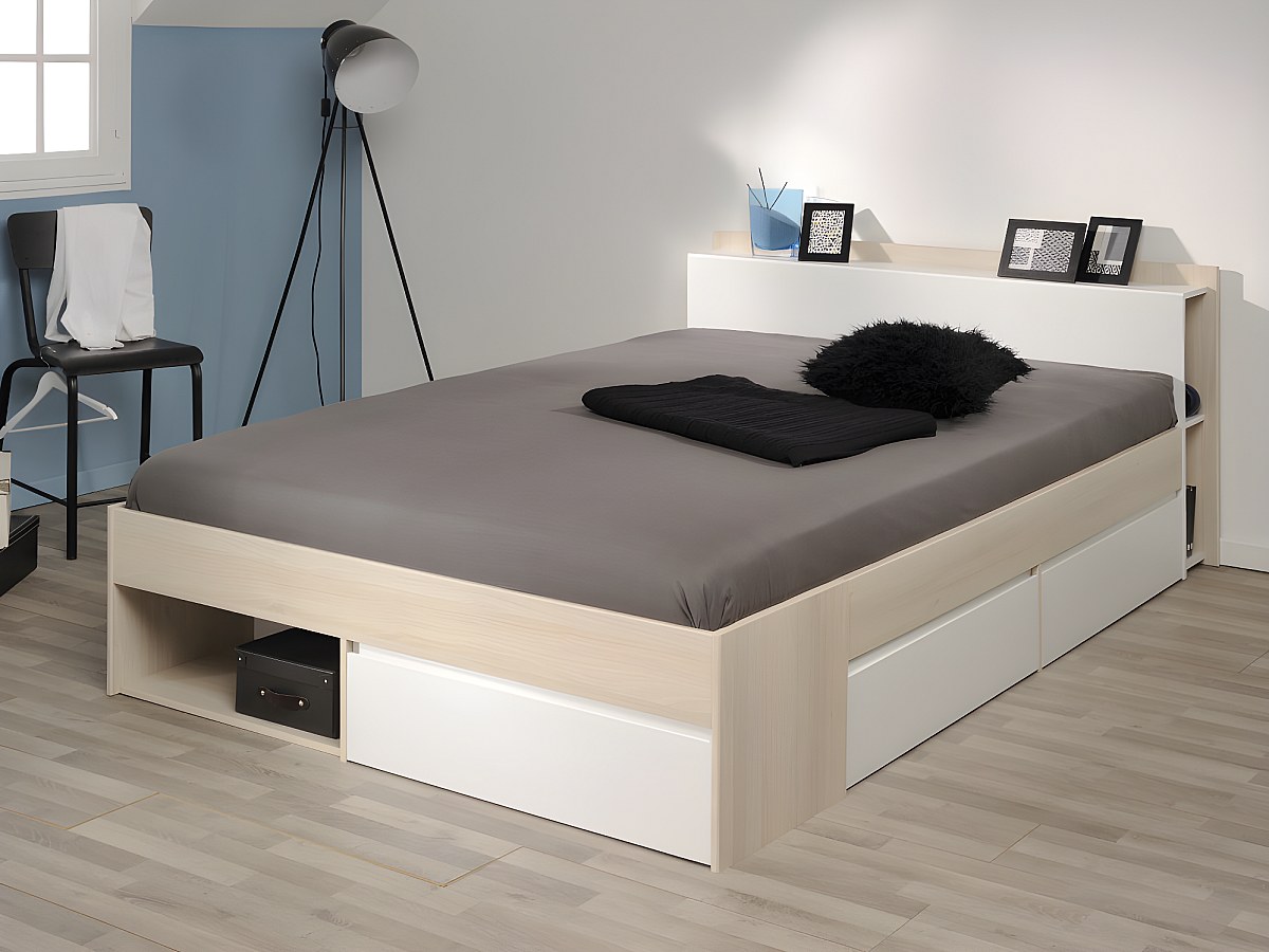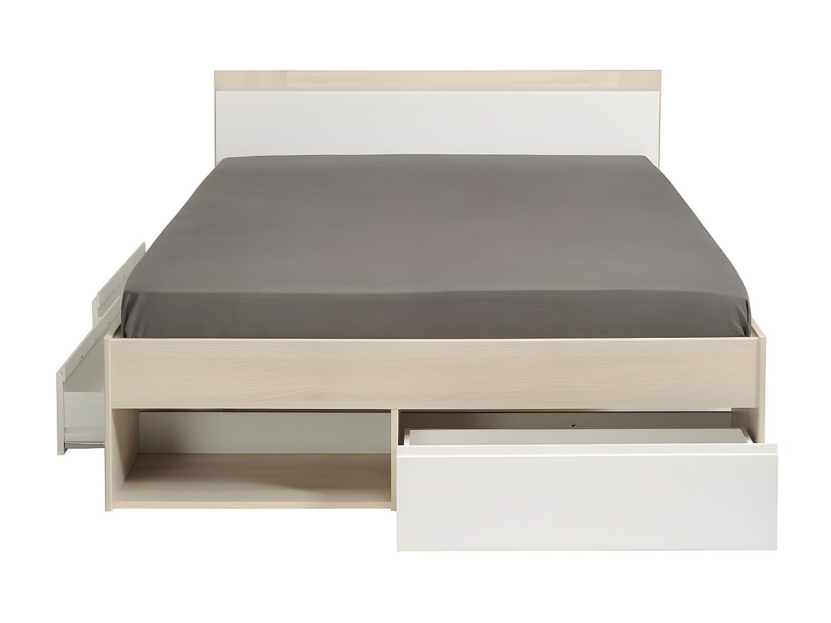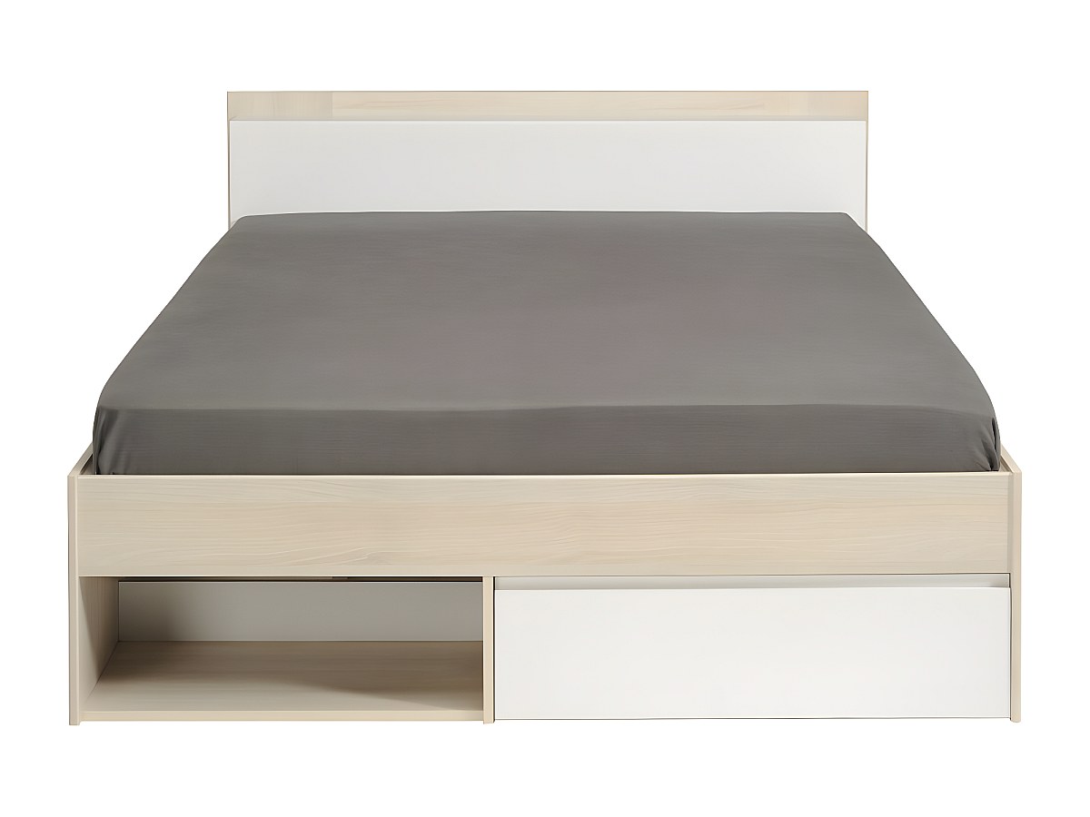 Cama DEBAR com arrumação - modular 140*190cm ou 140*200 cm - Acácia e branco