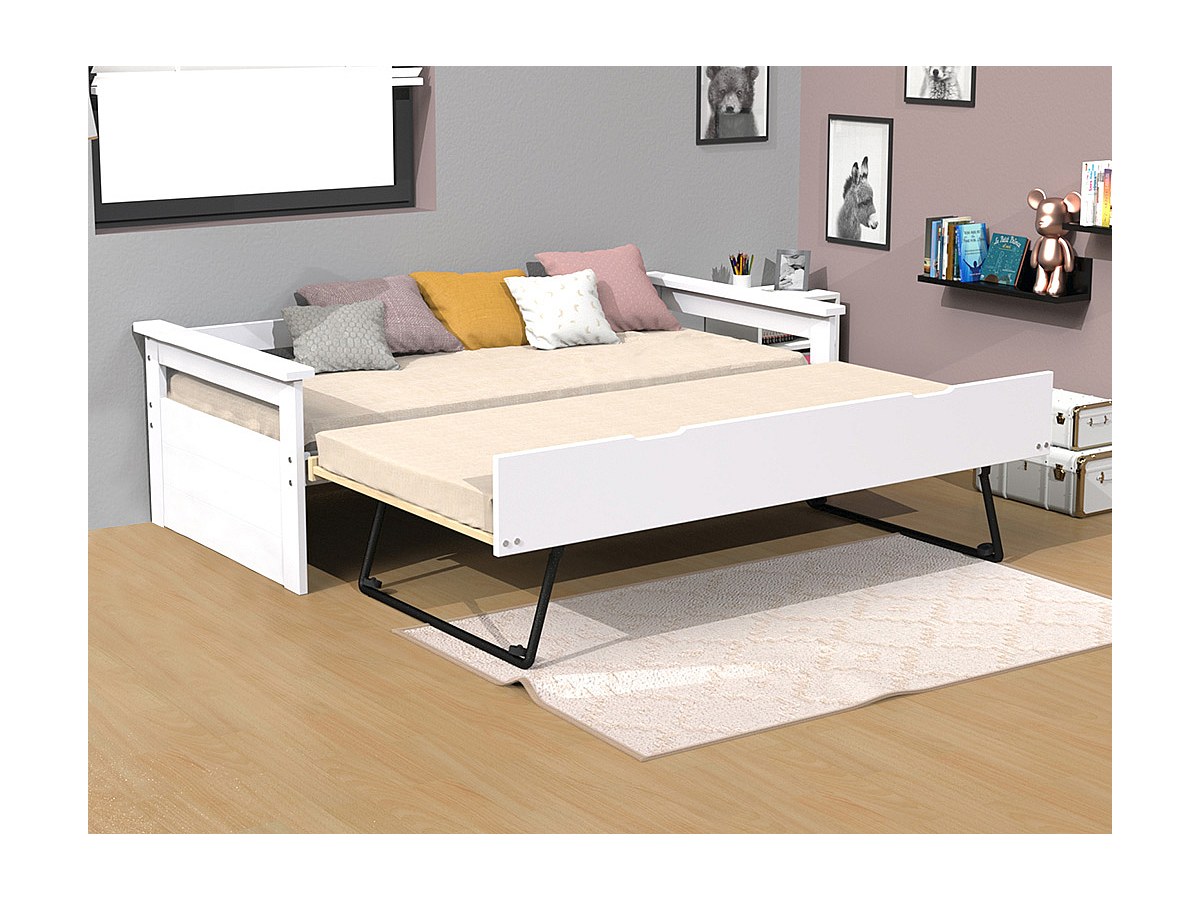 Cama dupla e banco ALFONSO - 90 x 190 cm - Preto ou branqueado (Disponível com ou sem colchão)