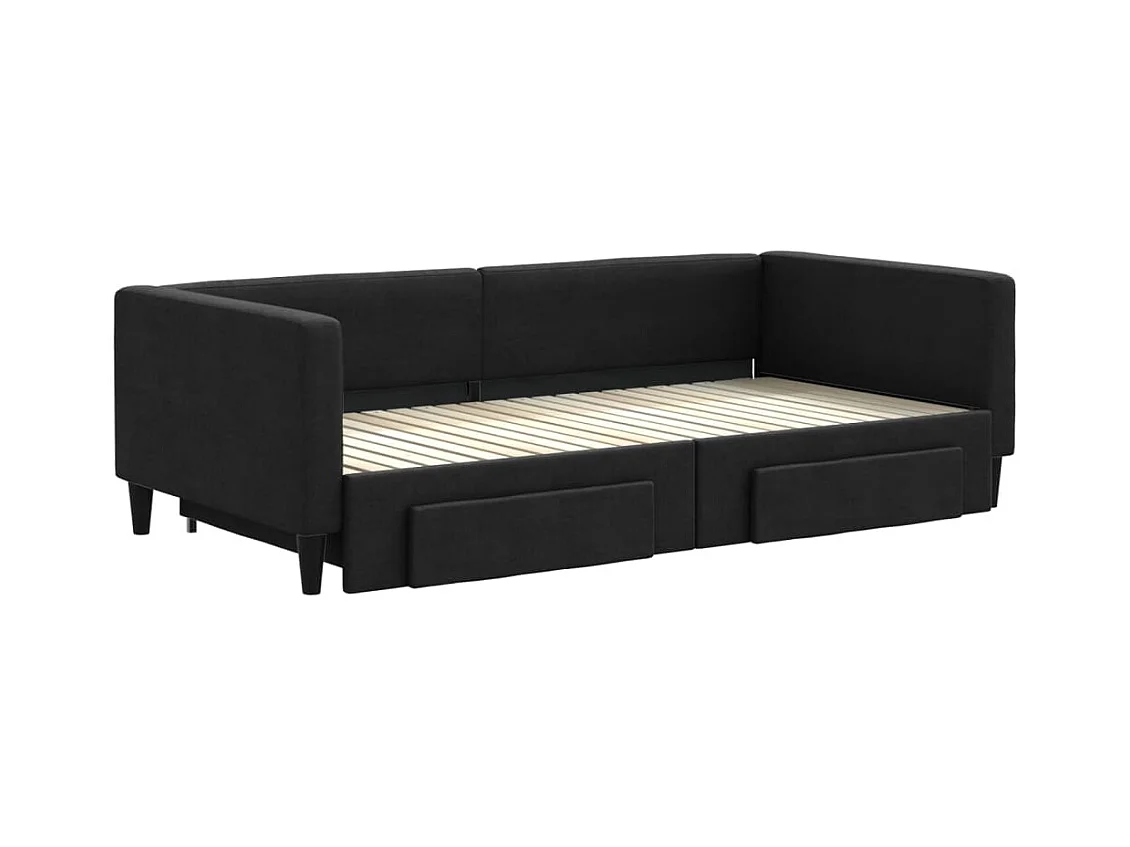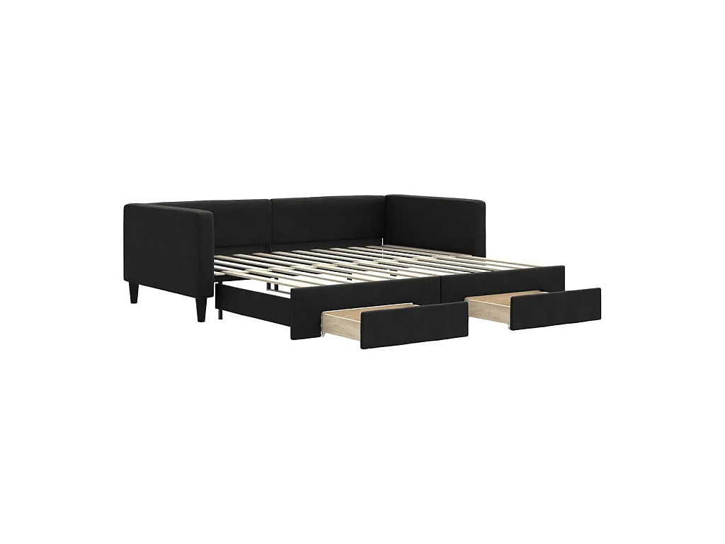 Sofá-cama com gavetão e gavetas 100x200 cm tecido preto