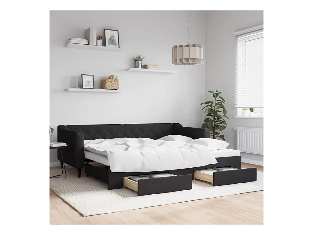 Cama dupla com gavetão e gavetas 90x200 cm tecido preto PT276567