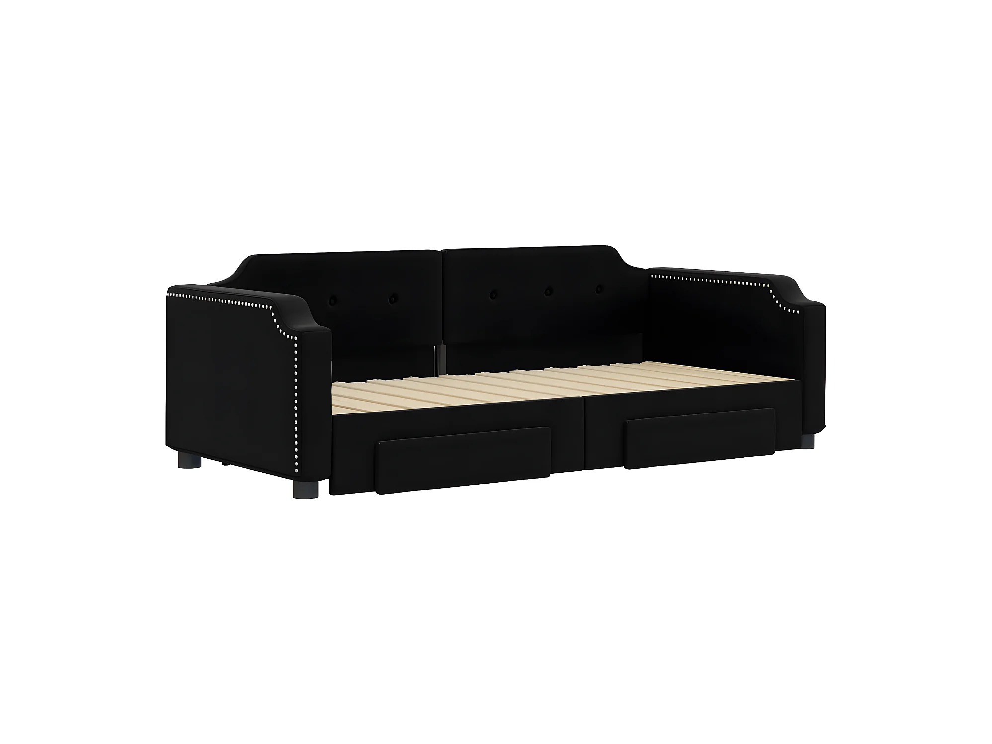 Sofá-cama 90x200 cm c/ gavetão e gavetas couro artificial preto PT543927