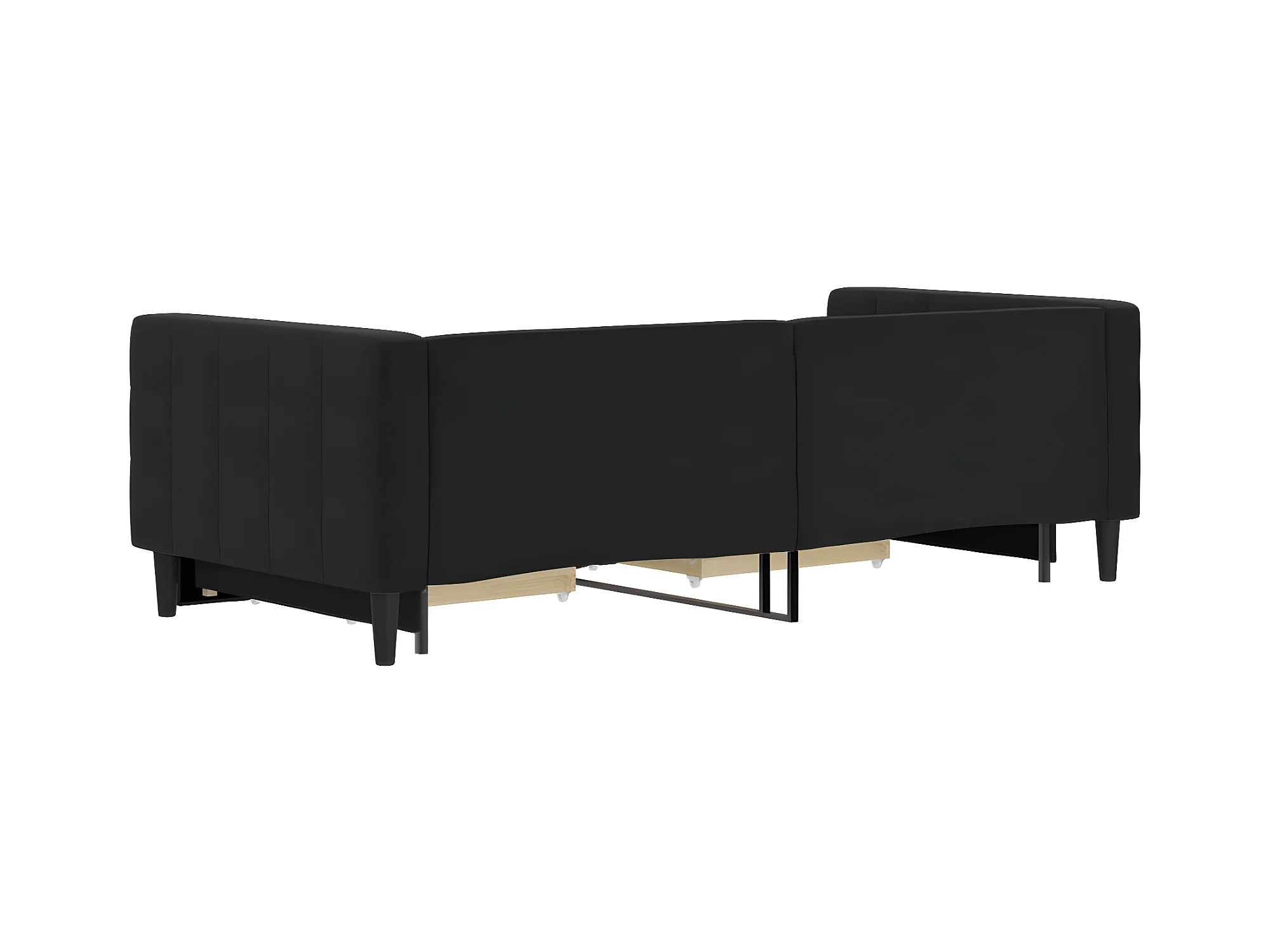 Cama dupla com gavetão e gavetas 90x200 cm veludo preto PT533209