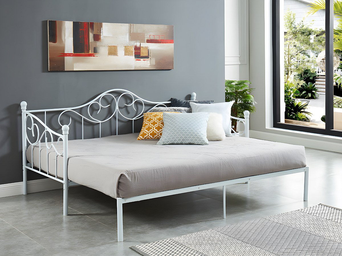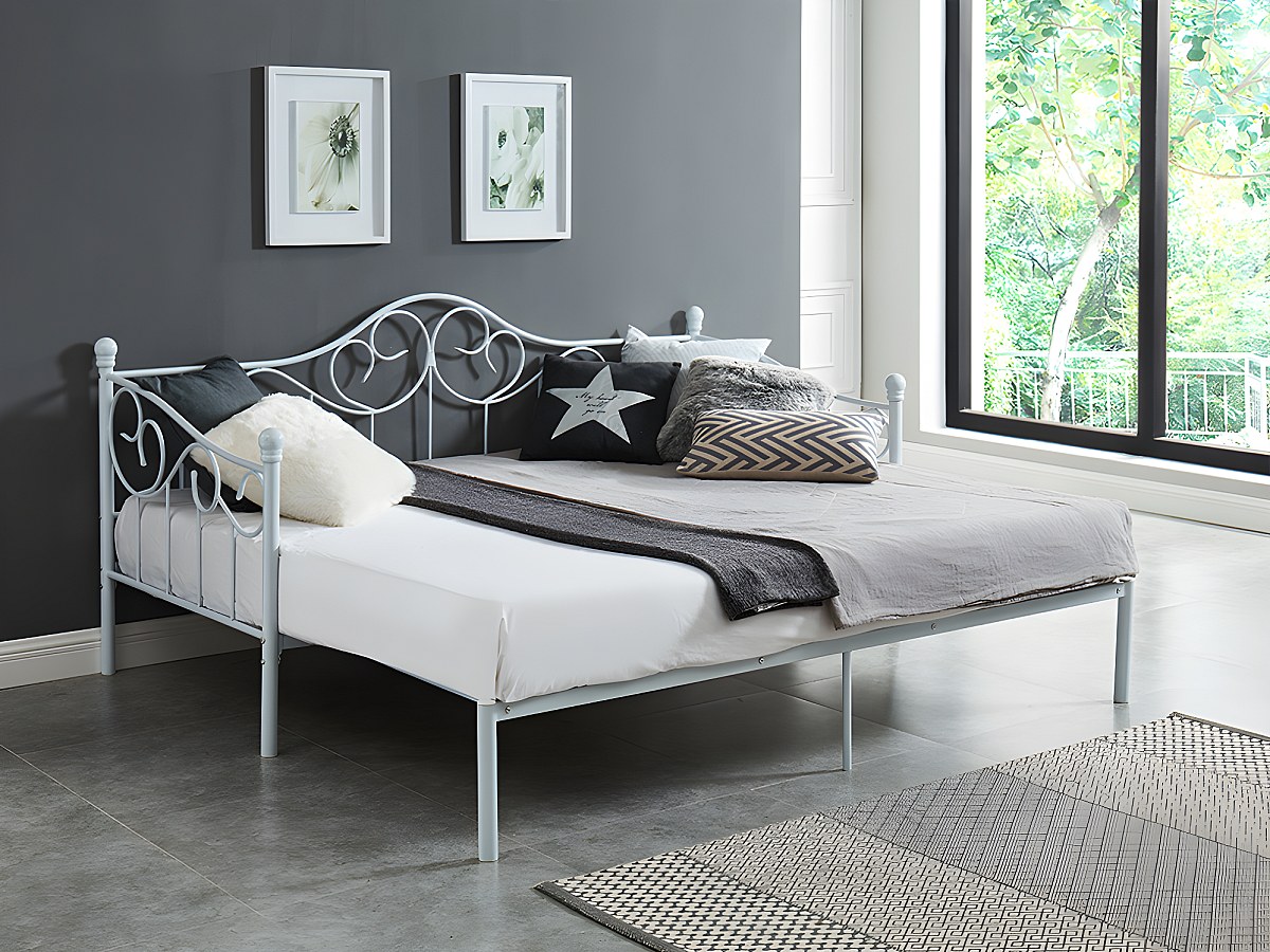 Cama dupla extensível 2x90x200 ou 180x200 cm em metal branco - SEBILLE
