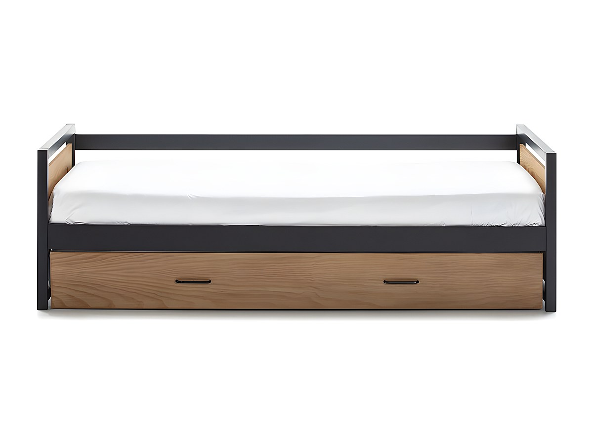 Cama dupla industrial 2x90x190 cm MDF, pinho e metal Castanho noz e antracite - BOSTON
