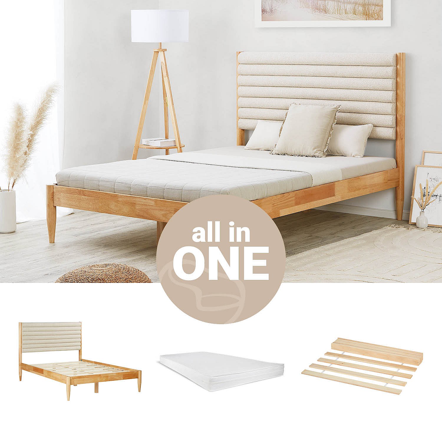 Cama dupla pequena 140x200 cm bege