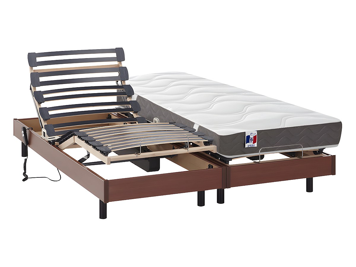 2 sommiers articulados elétricos com ripas múltiplas - 5 planos horizontais - Firmeza regulável sobre réguas