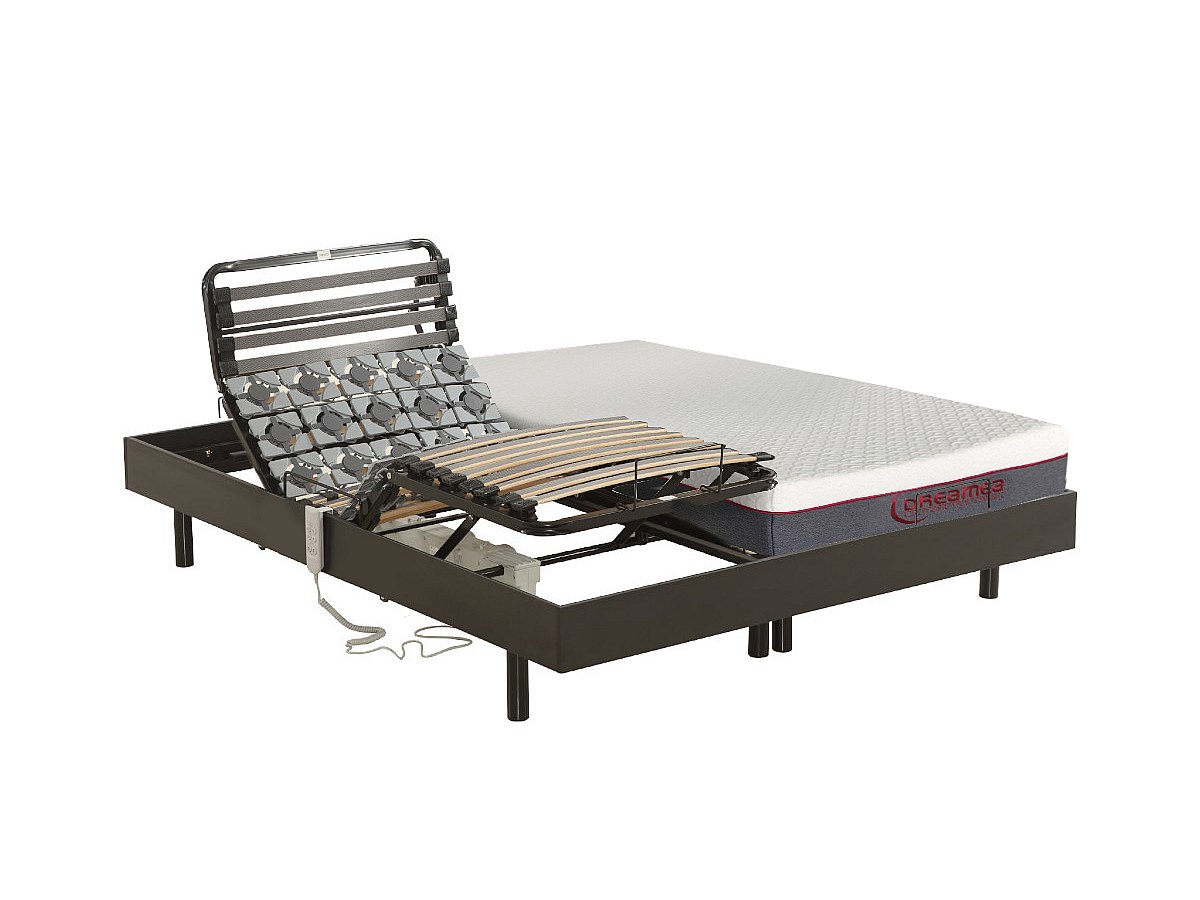 Conjunto articulado elétrico composto por 2 sommiers de ripas e terminais, 2 colchões memória de forma e 8 pés de oferta: