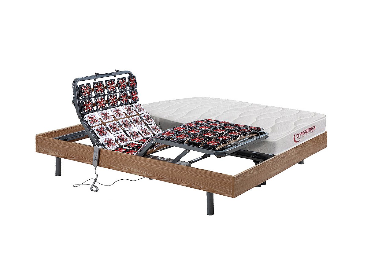 Cama elétrica articulada terminais colchão acolhimento látex LAODICE da DREAMEA - Motores OKIN - Carvalho natural - 2 x 80 x 200 cm