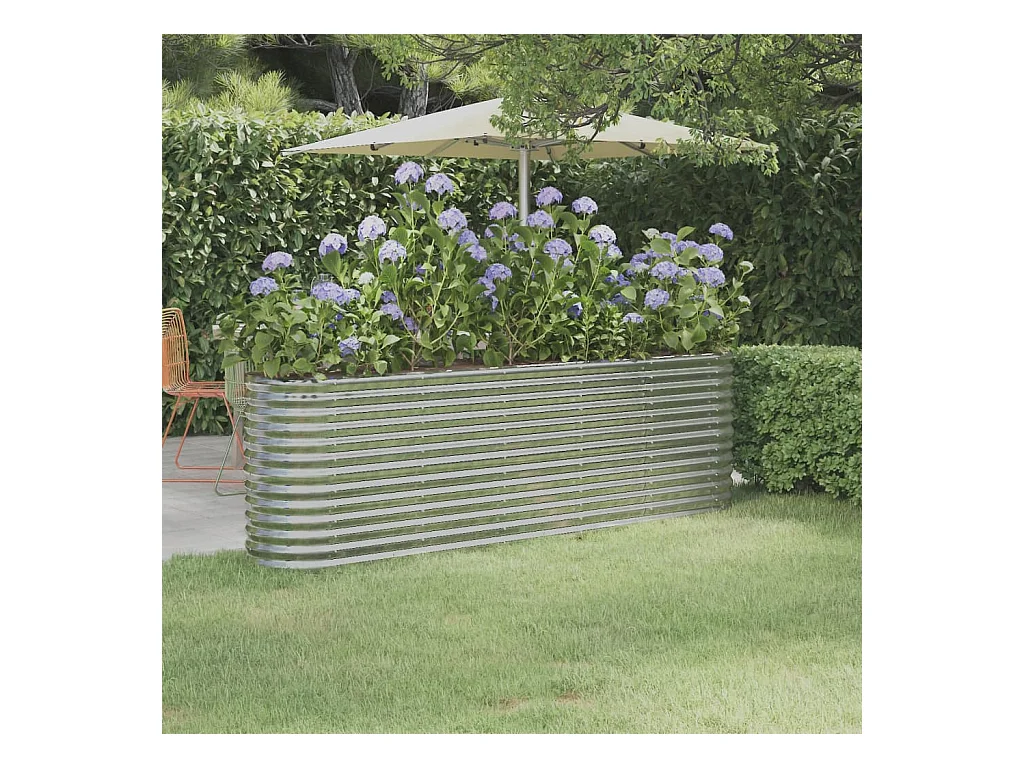 Cama elevada de jardim com revestimento em pó de aço prateado