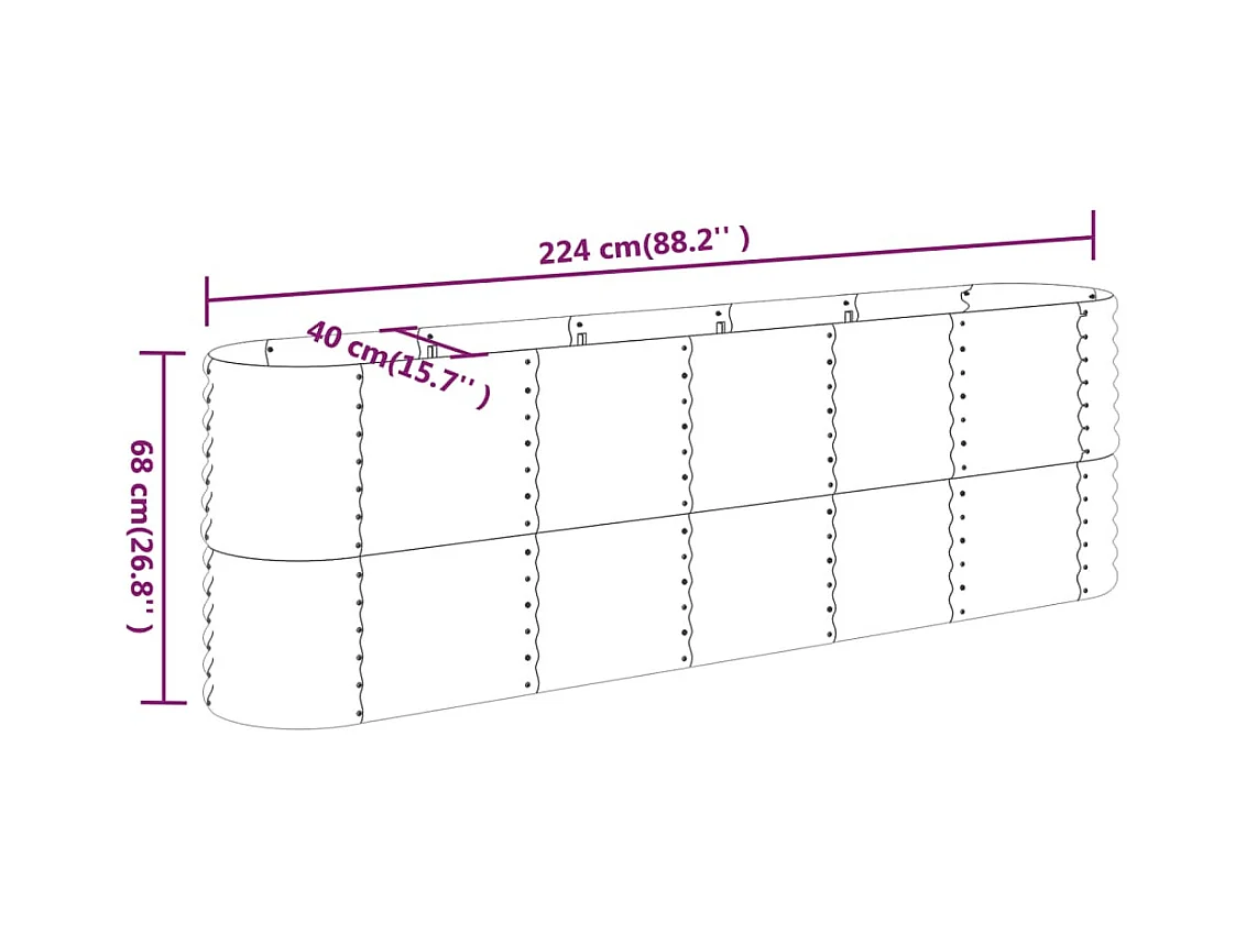 Canteiro elevado jardim 152x40x68cm aço revestido a pó prateado PT786034