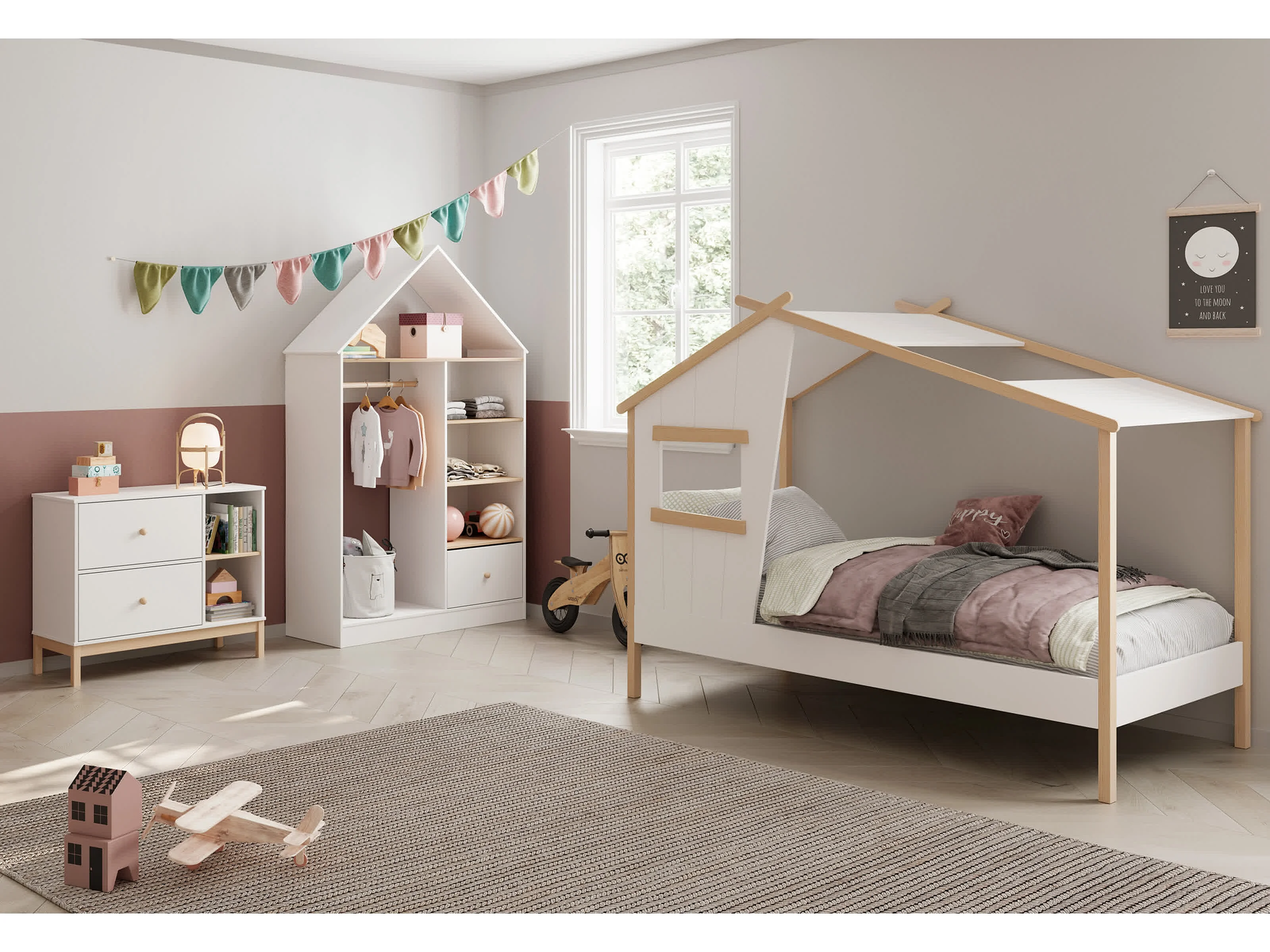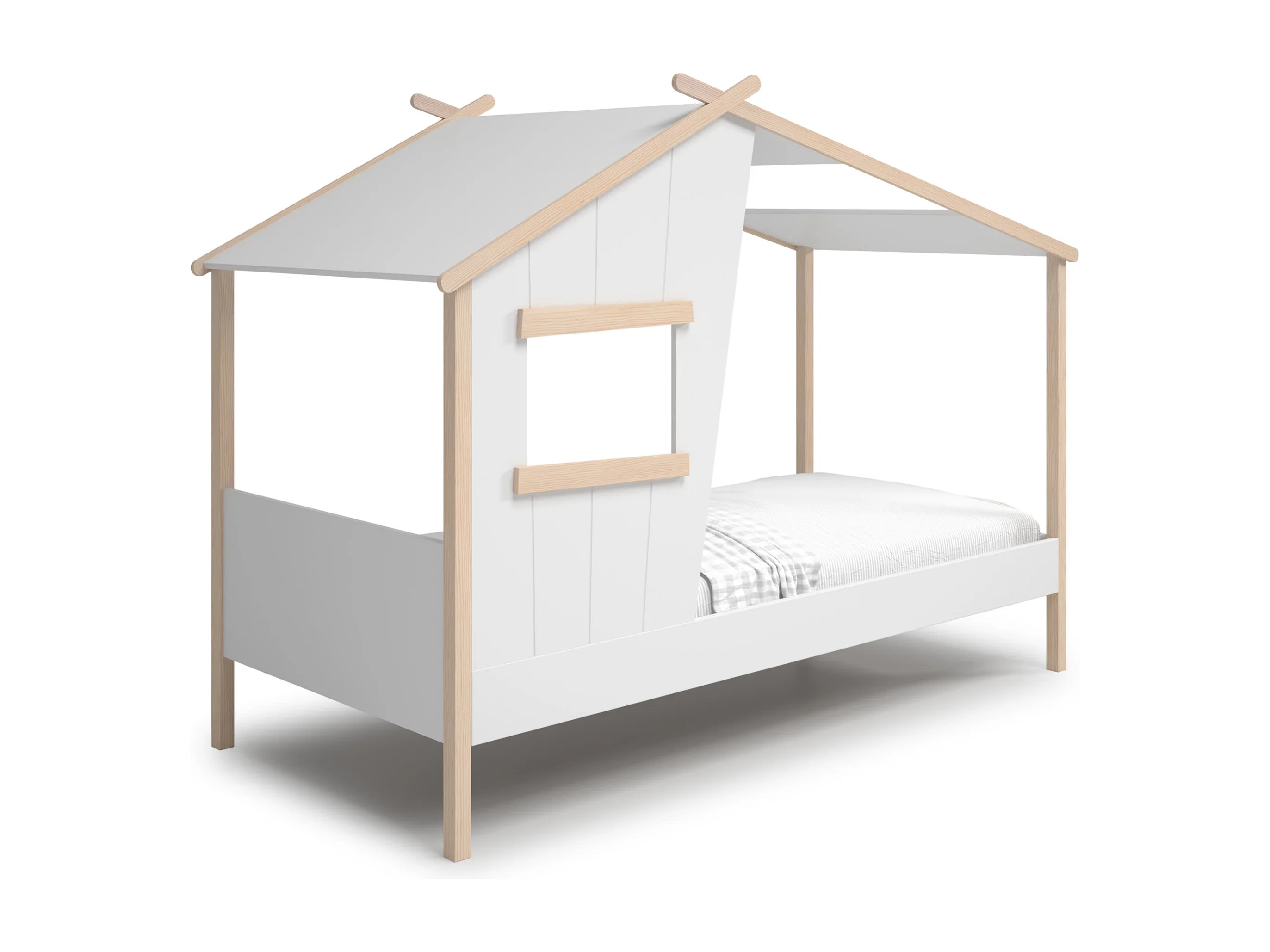 Cama de cabana 140x200 barreira e estrado de molas incluídos pés 1 cm Daisy White
