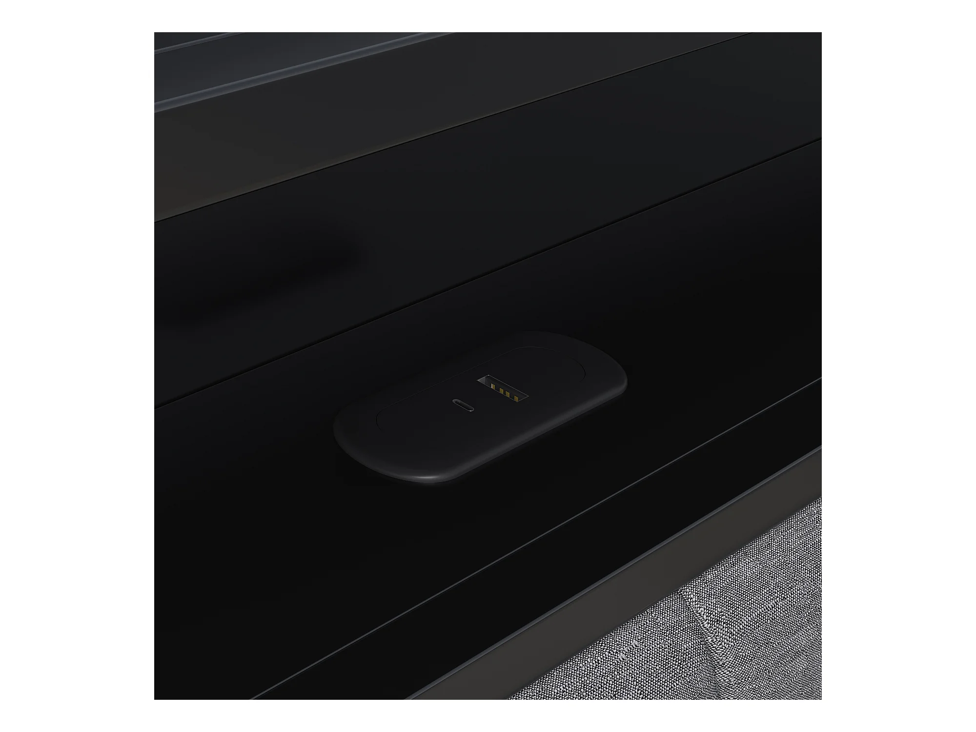 Cama estofada de 160 x 200 cm, com espaço de arrumação e estrado de ripas, LED e USB, em linho, cinzenta.