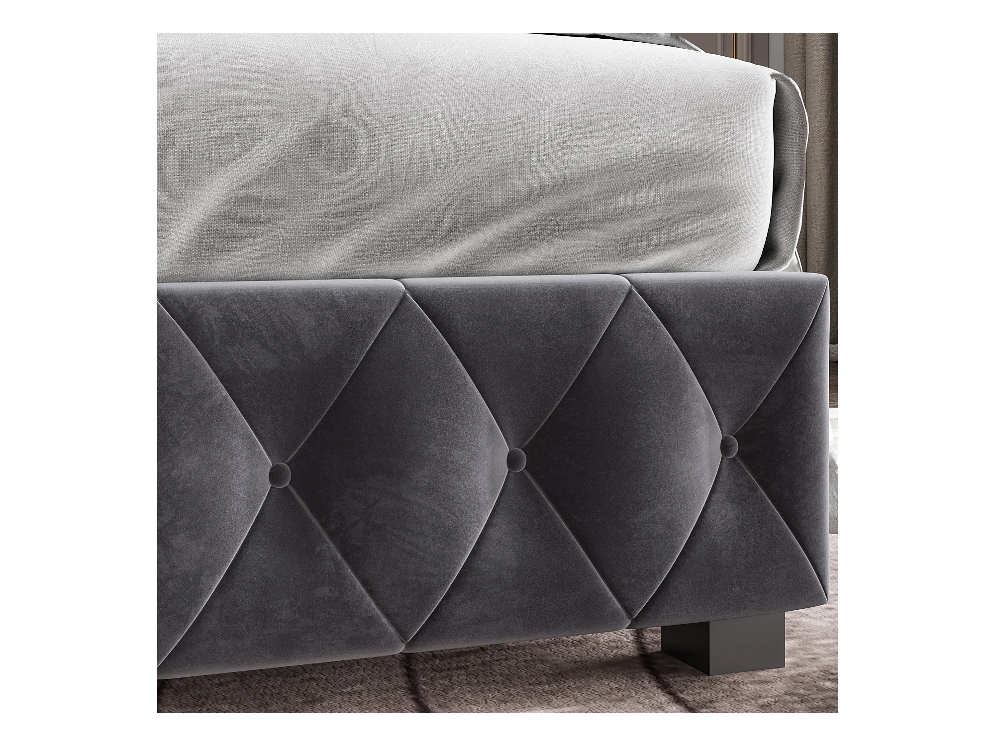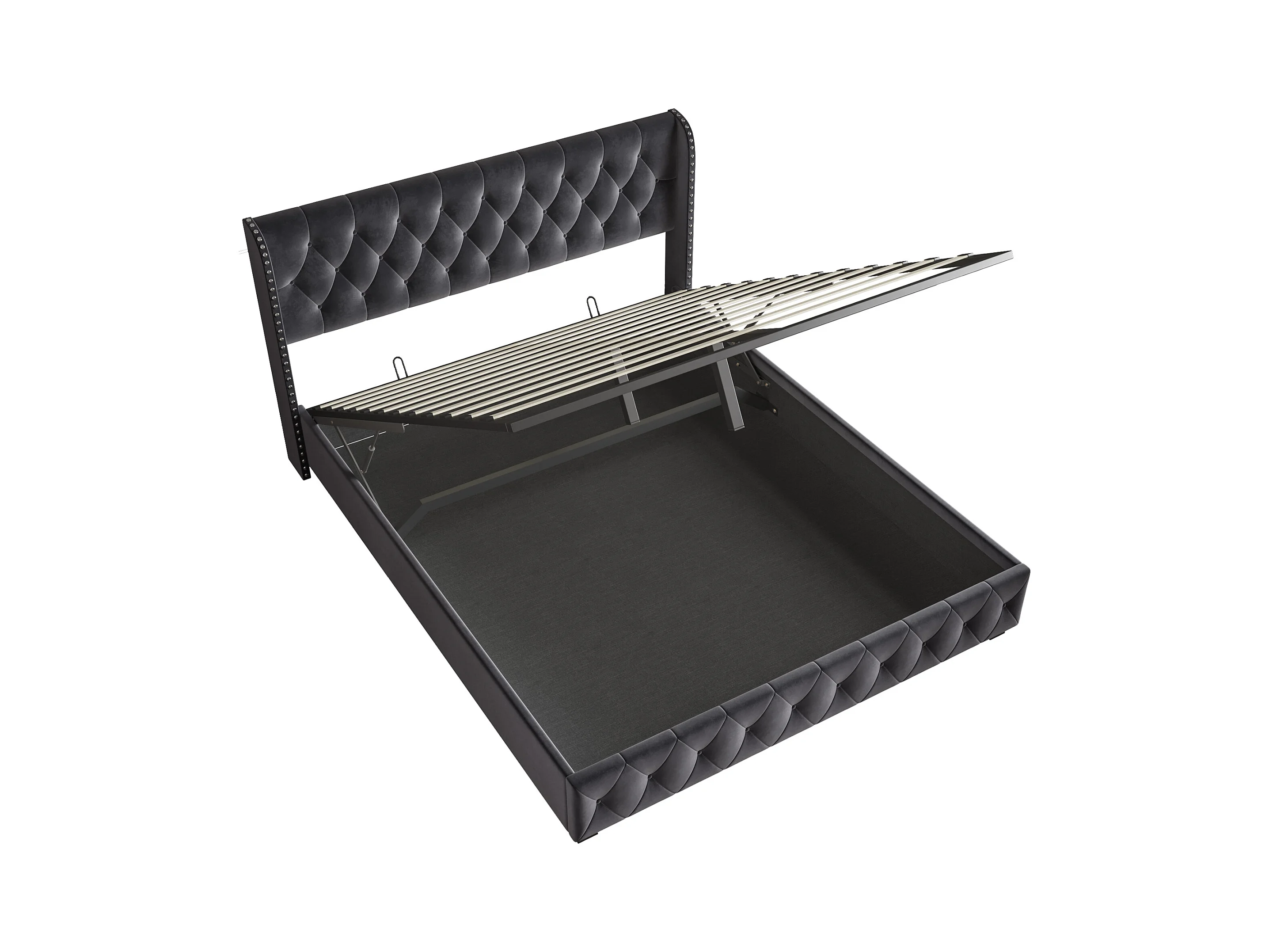 Cama de casal com arrumação 180x200 cm em veludo cinzento com cabeceira estofada e arrumação hidráulica