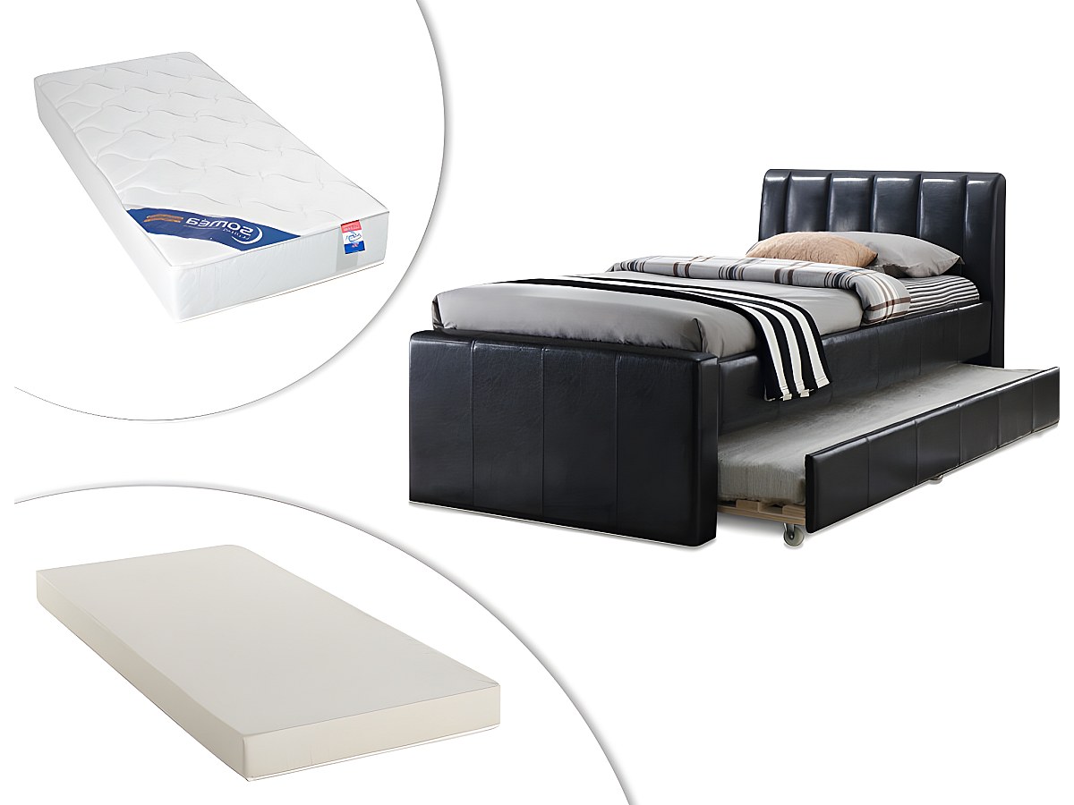 Cama dupla 2x90x190 cm em pele sintética Preta ANDREA + colchão + colchão 90x190 cm ZEUS