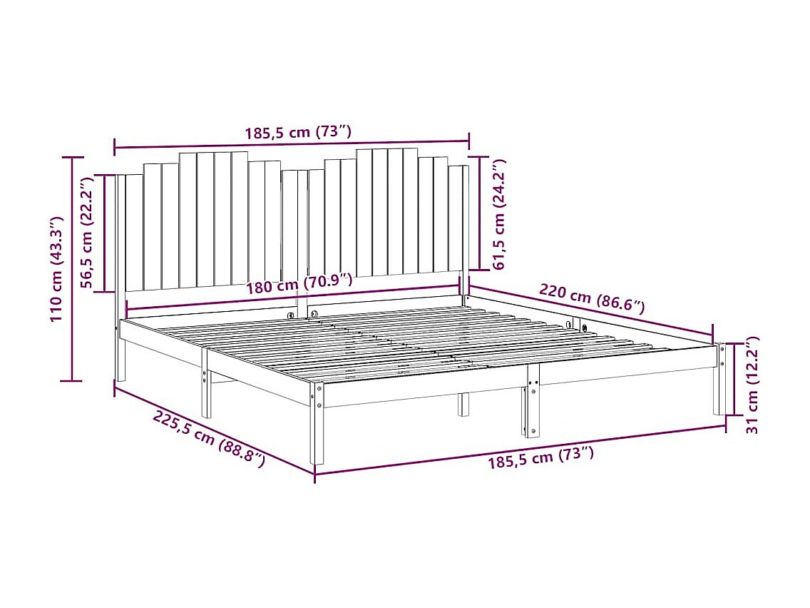 Cama extra longa sem colchão 180x220 cm madeira maciça