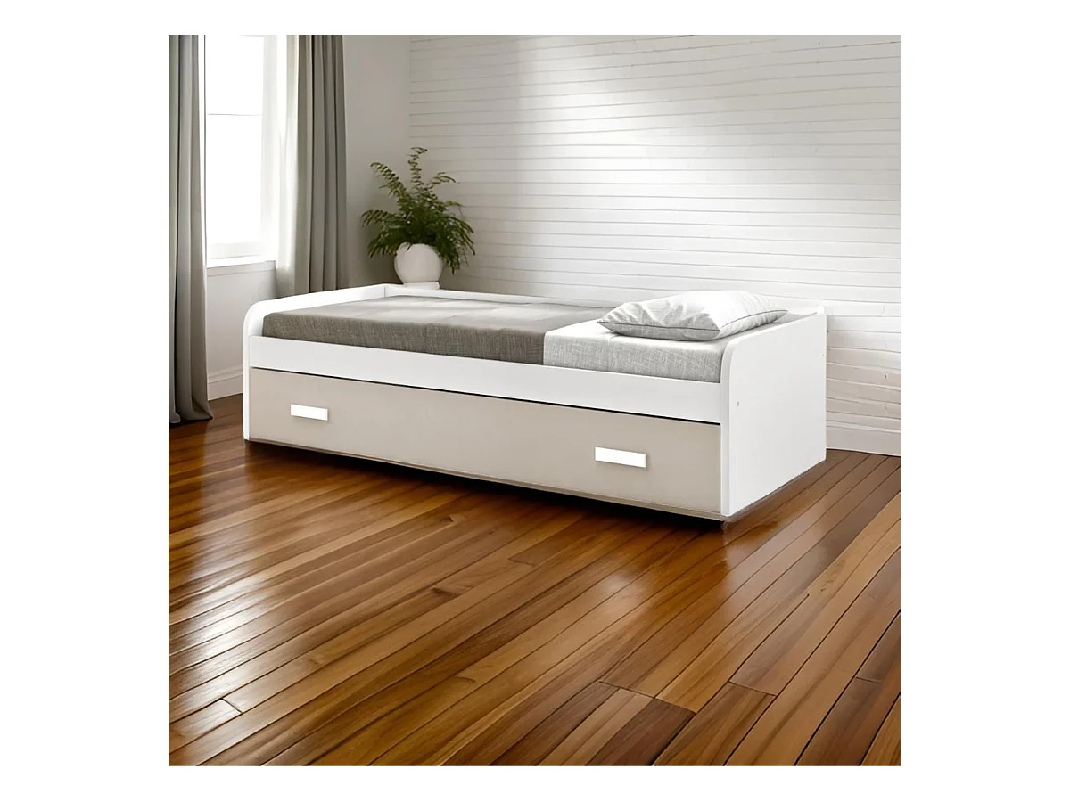 Cama Gaveta - 105 Cm 54X190X113Cm - Branco-Cappuccino