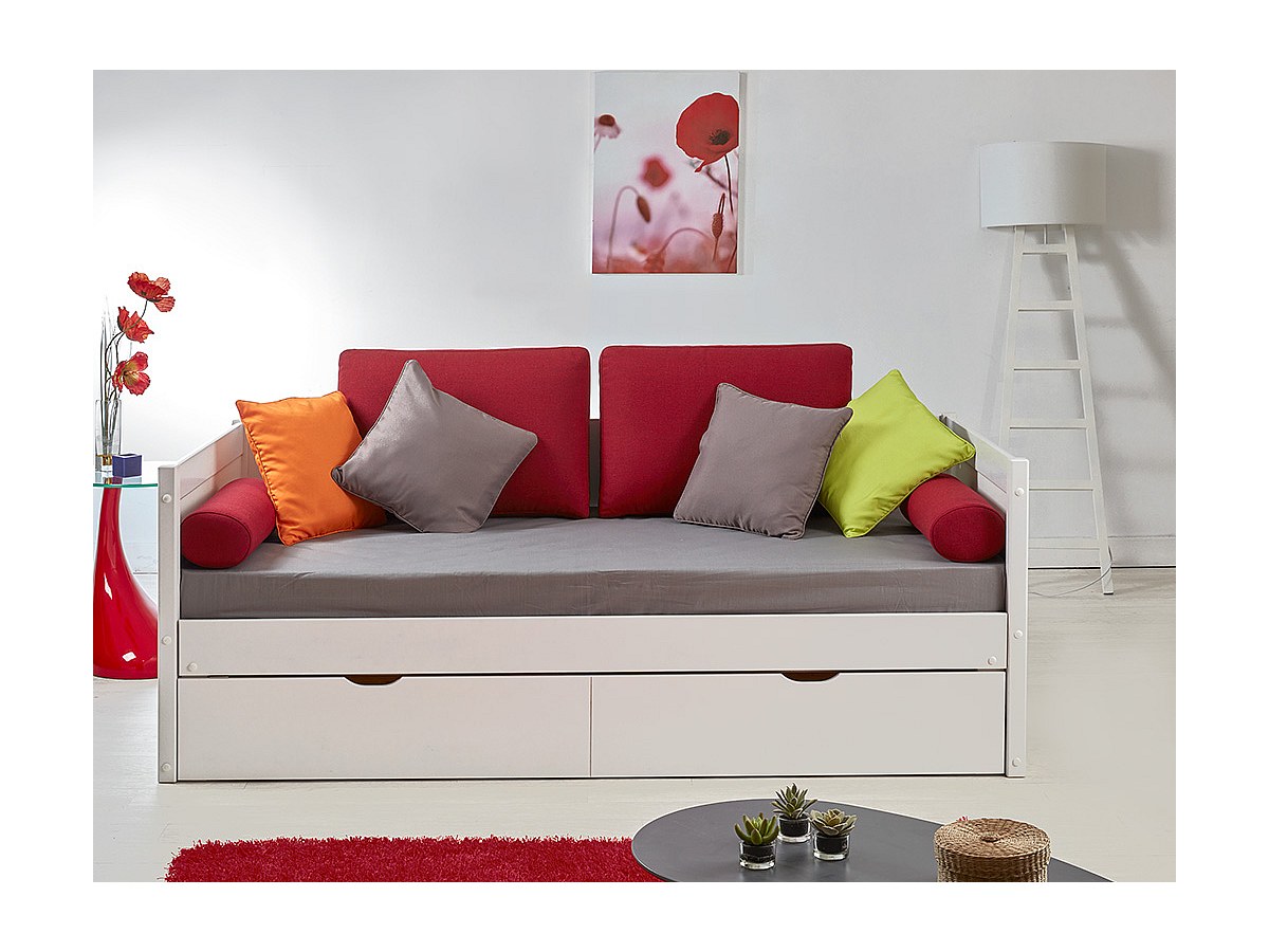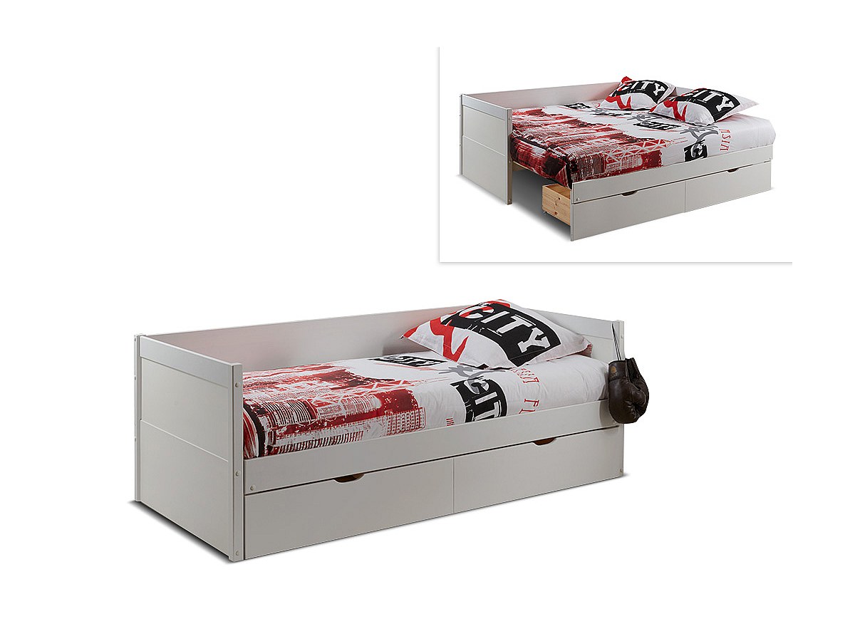 Cama-gavetão banco com arrumação 90x190 cm Lacado branco - ALFIERO
