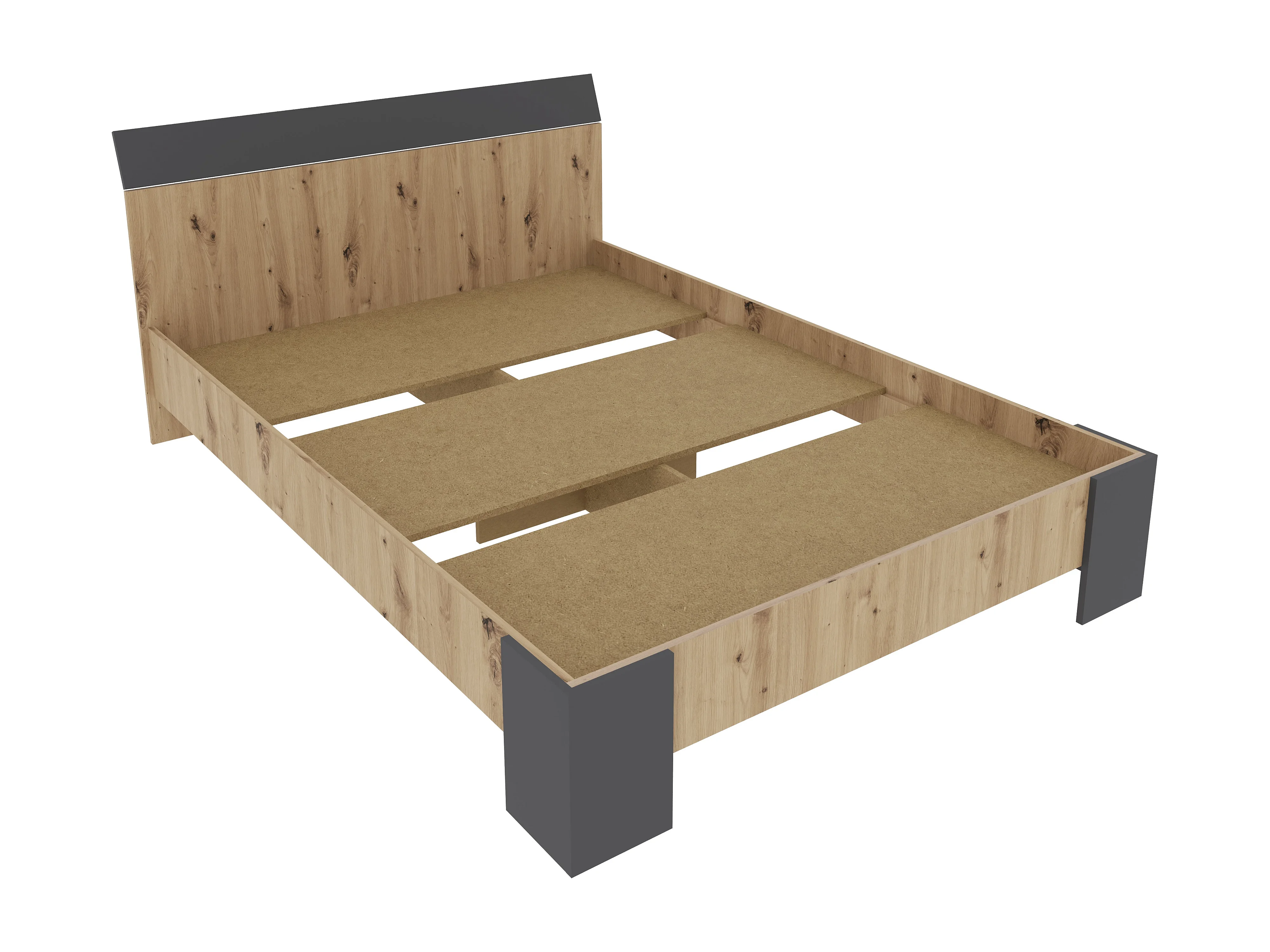Cama haaus Pedro 200x140 cm com colchão de espuma incluído, Carvalho Artisan / Antracite
