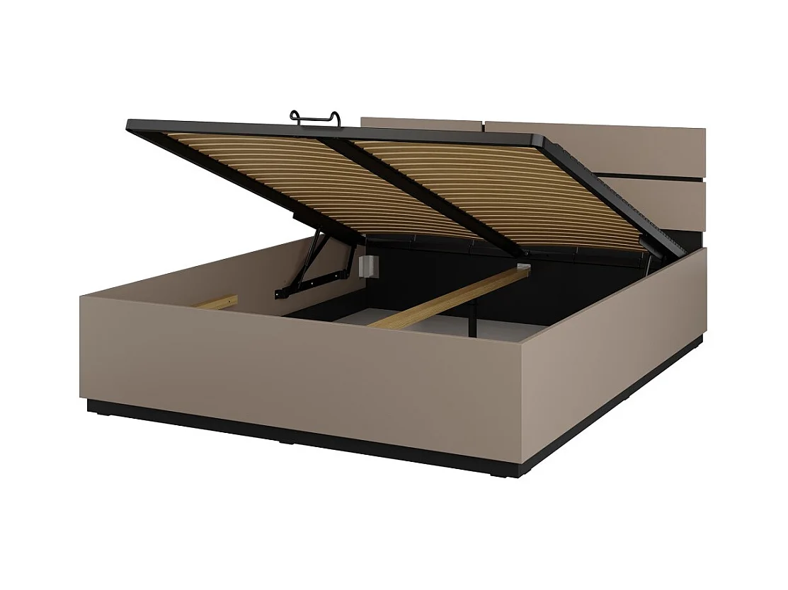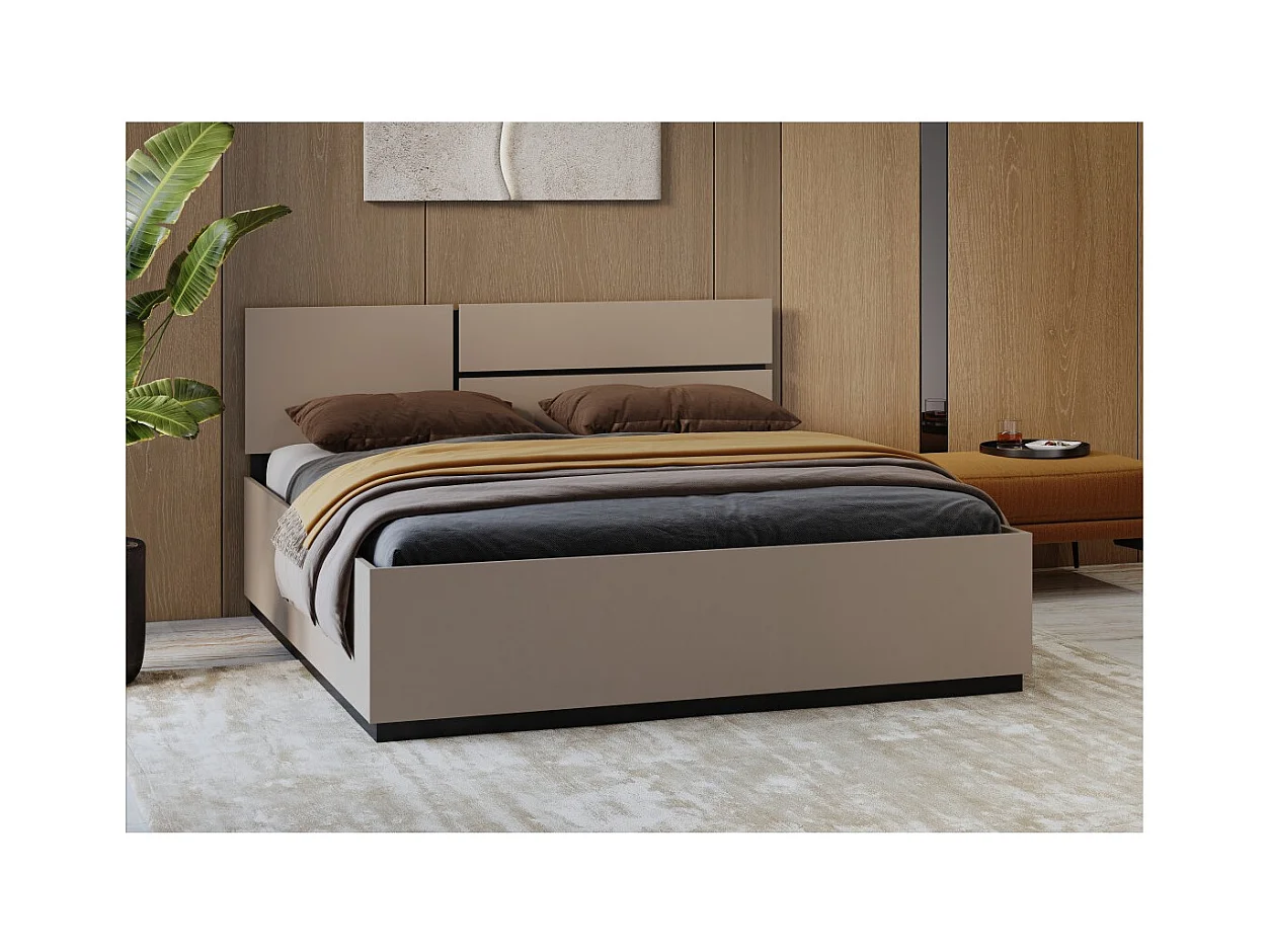 Cama HAVANA 160x200 cm bege e preta com baú – Elegância contemporânea e armazenamento integrado