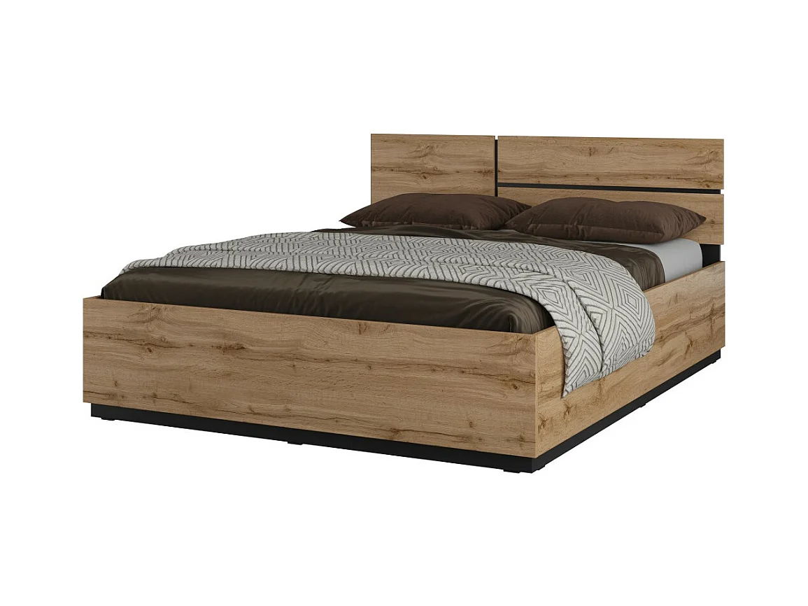 Cama HAVANA 160x200 cm carvalho e preto com baú – Estilo moderno e armazenamento inteligente