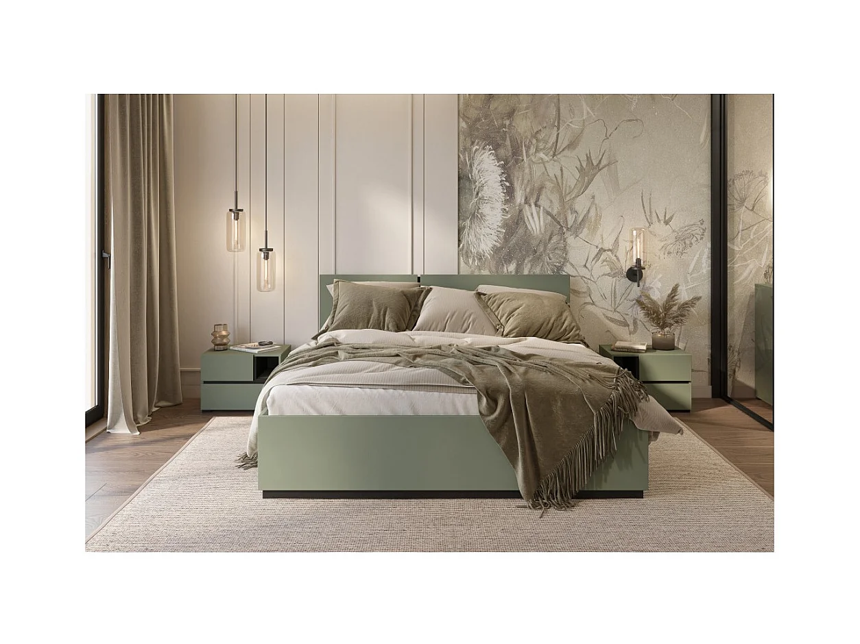Cama HAVANA 160x200 com estrado – Cor verde-sálvia e preto – Design moderno e estrutura robusta