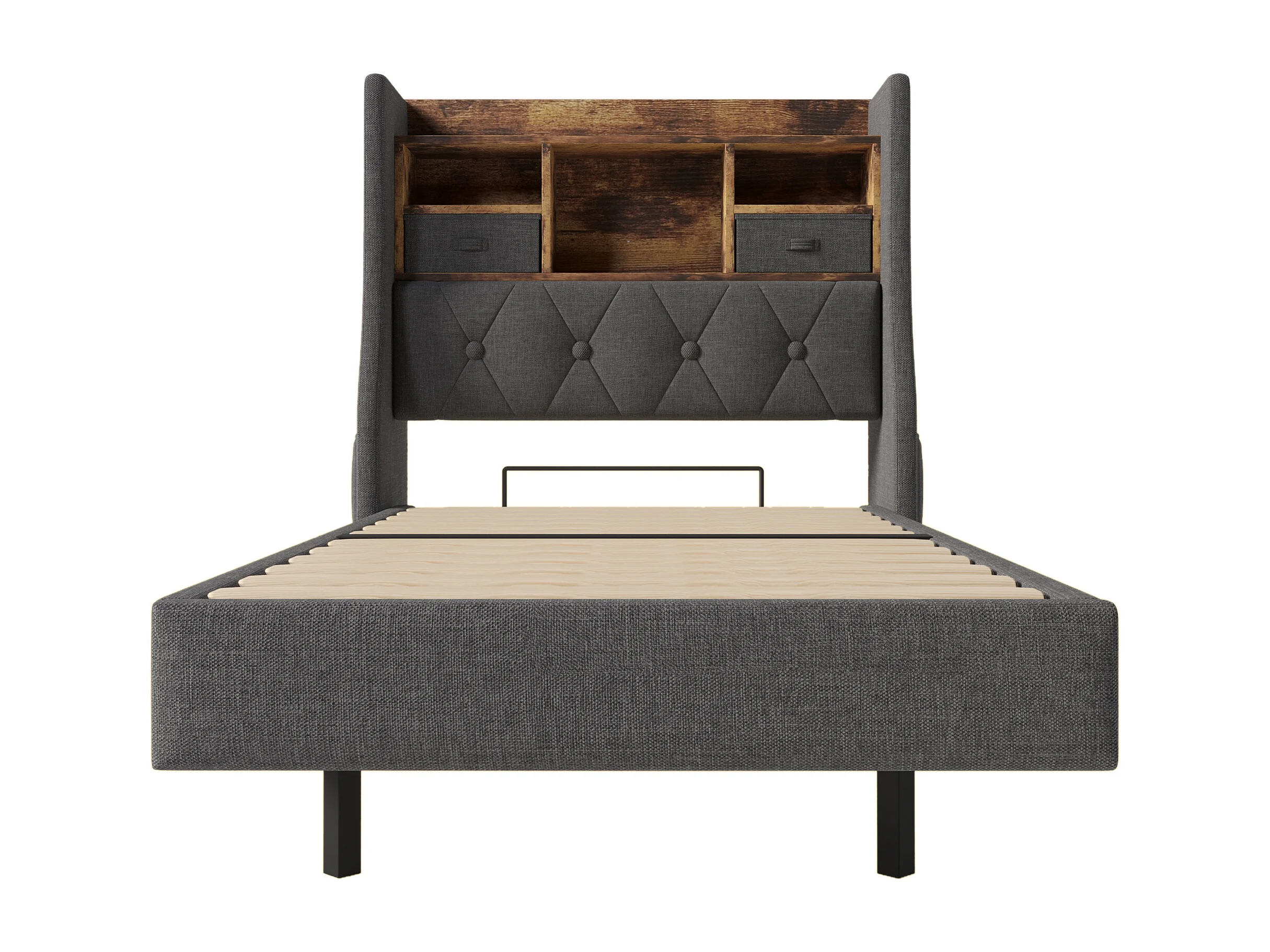 Cama individual 90 x 200 cm - Cama de criança com 2 bolsos laterais e 2 gavetas - roupa de cama cinzenta - colchão incluído