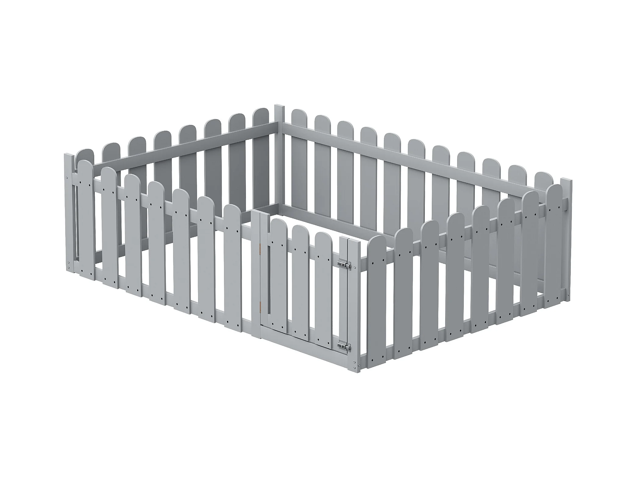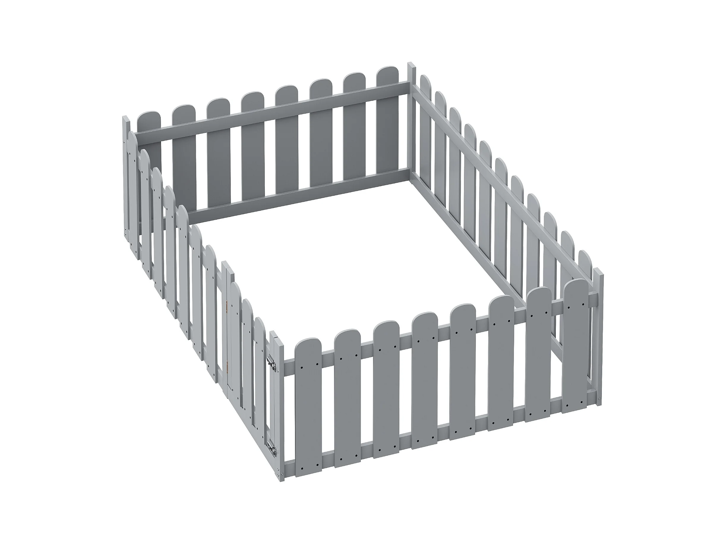 Cama infantil 140 x 200 cm, estrutura de madeira com borda e porta, cinza