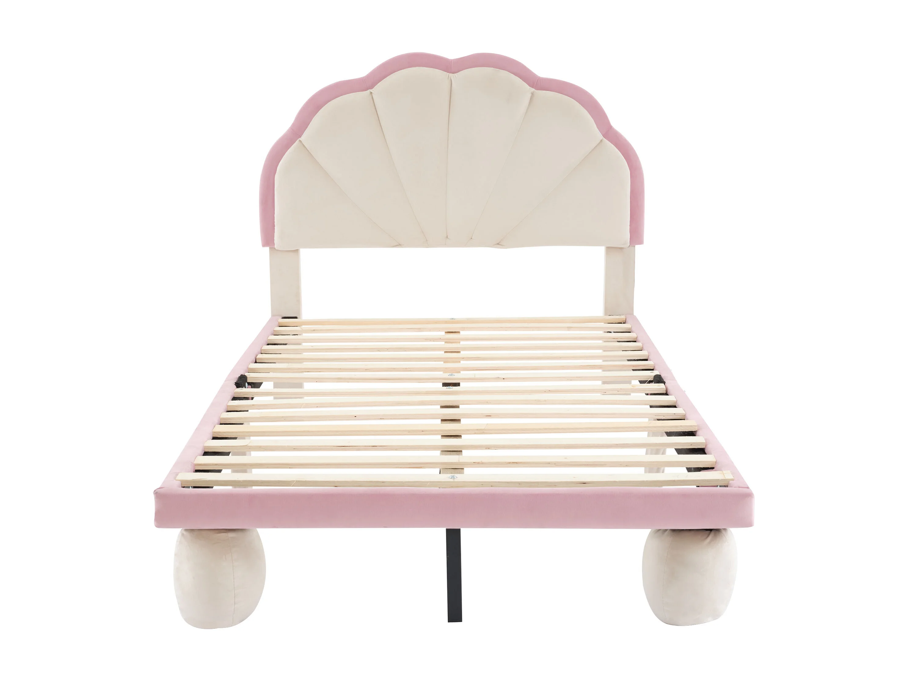 Cama infantil 90x200 cm com LED em veludo, sem colchão, bege + rosa