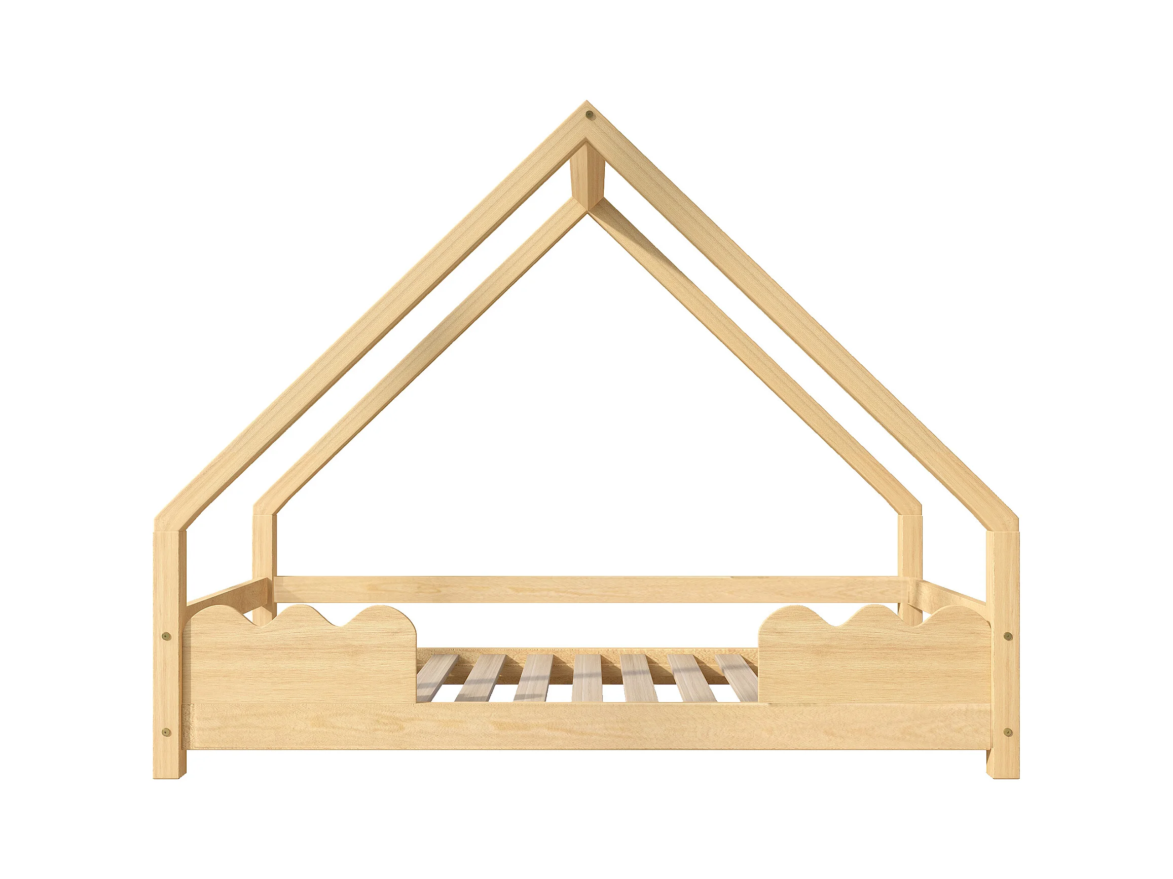 Cama infantil 90x200 madeira maciça com grades de segurança e base de ripas naturais