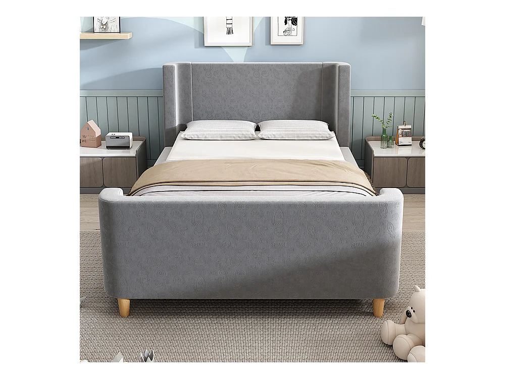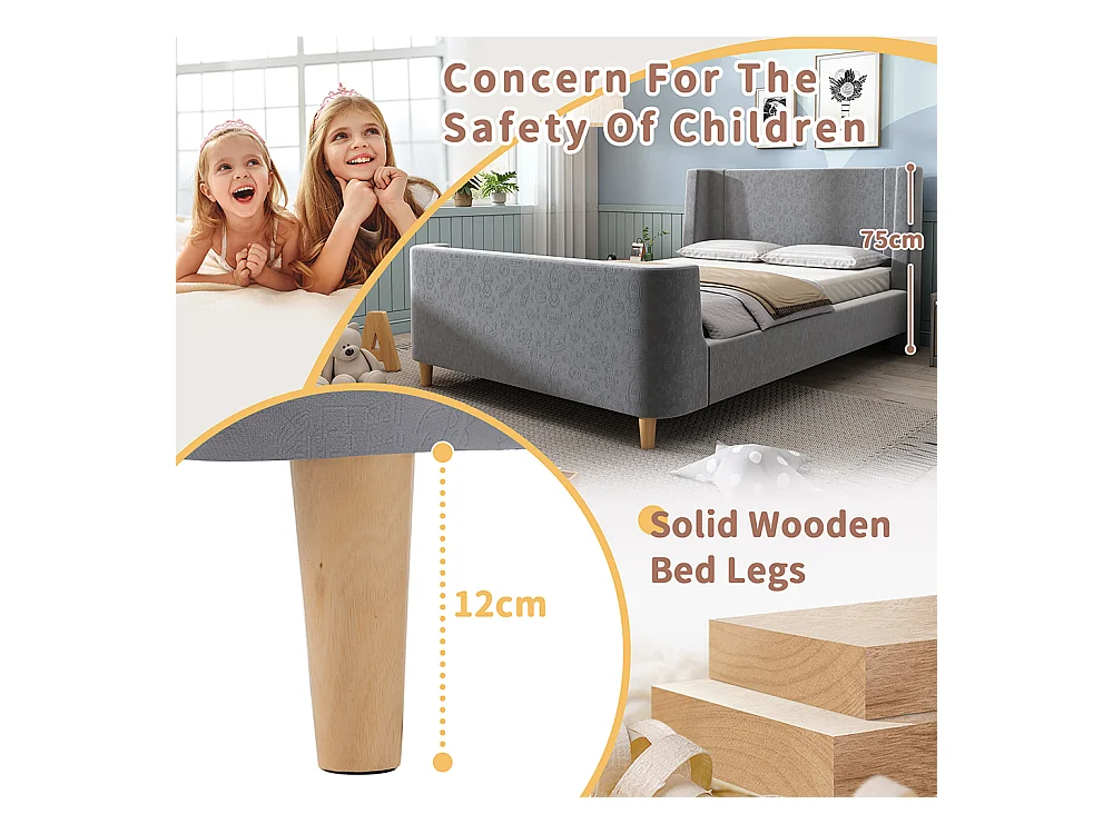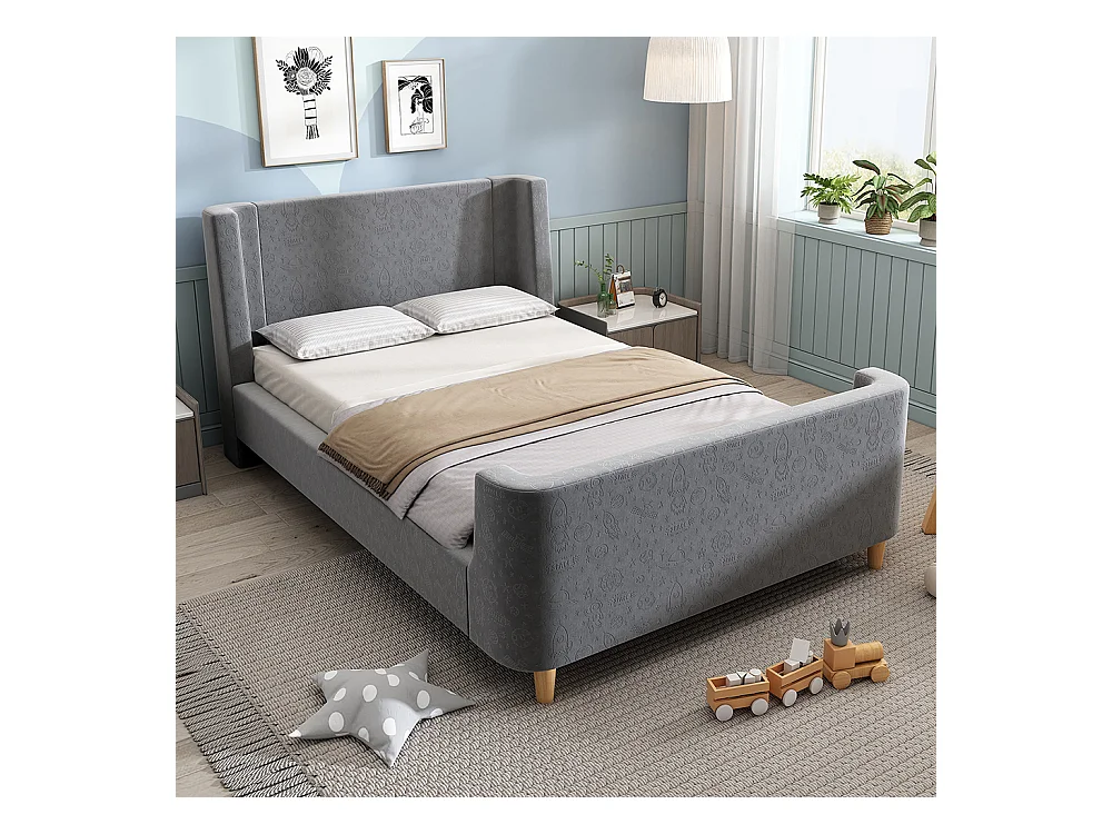 Cama infantil, cama estofada, cama trenó, 90 x 200 cm, para meninos e meninas, cinza, sem colchão