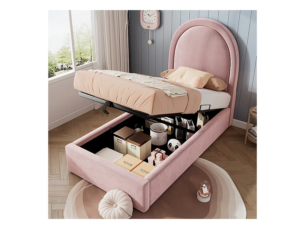 Cama c/ cabeceira 90x200 cm veludo rosa PT271168