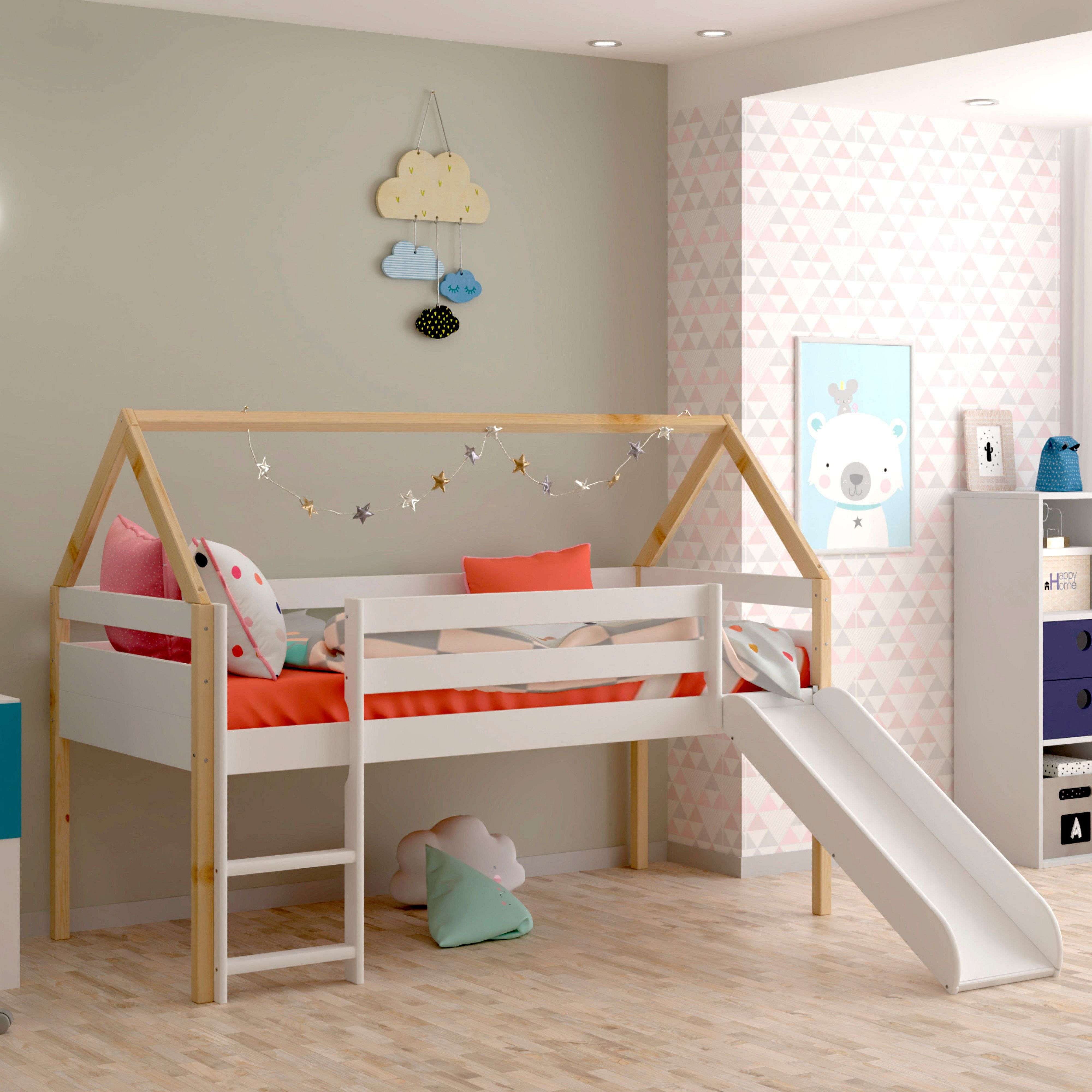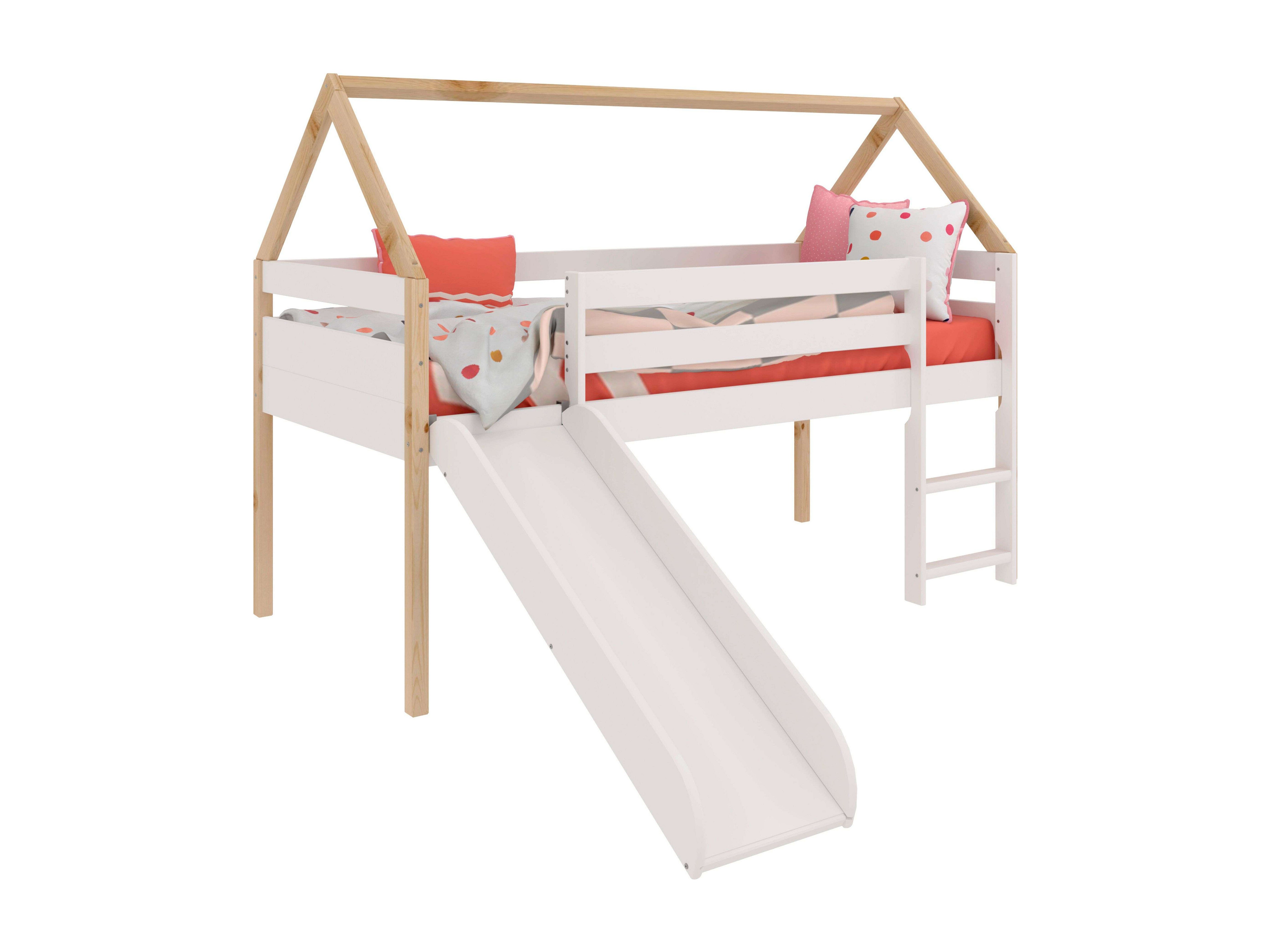 Cama infantil formato de casa 90x190 cm pinho maciço branco
